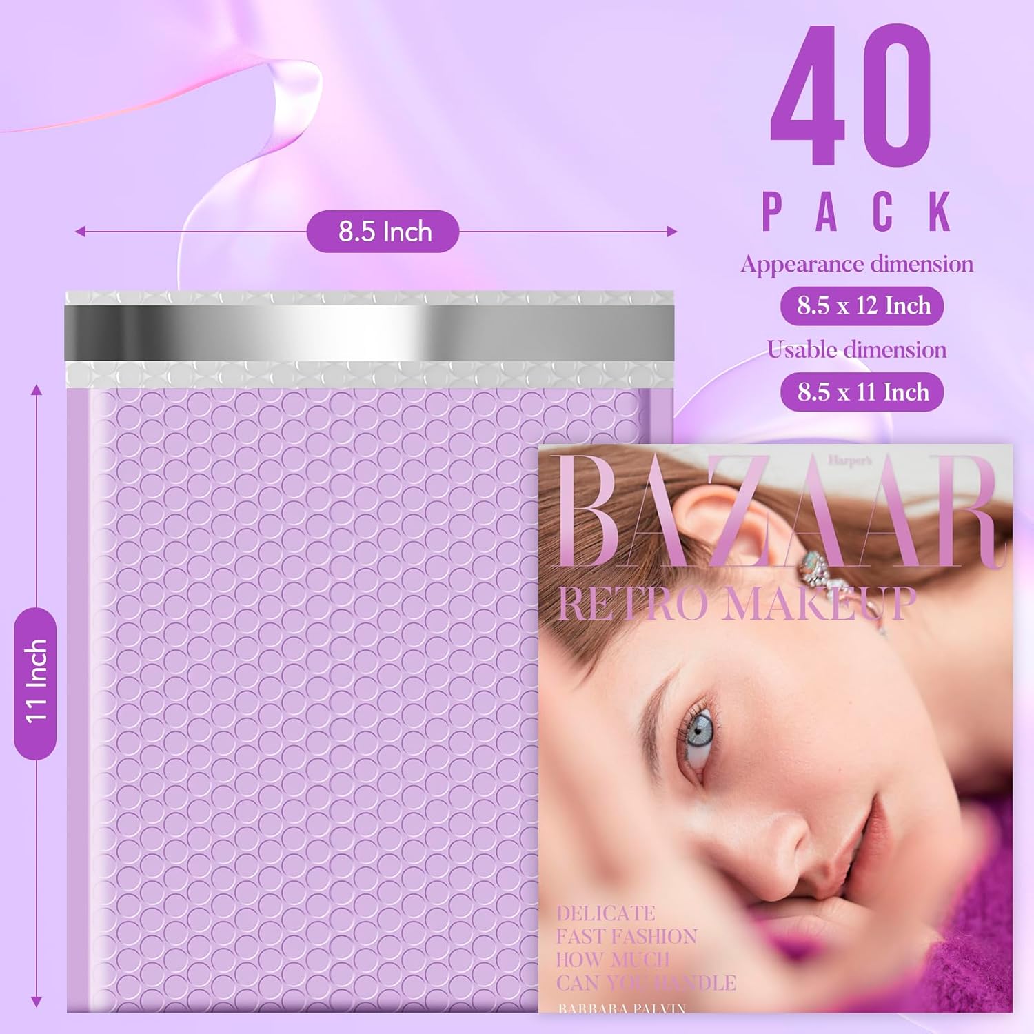 Fuxury Bubble Mailers 8.5x12" 40 Pack Large Bubble Envelopes Usable 8.5x11" Thick Cushioning Mailer for Mailing Books Clothes Mothers Day Gifts Mailers Lavender #2