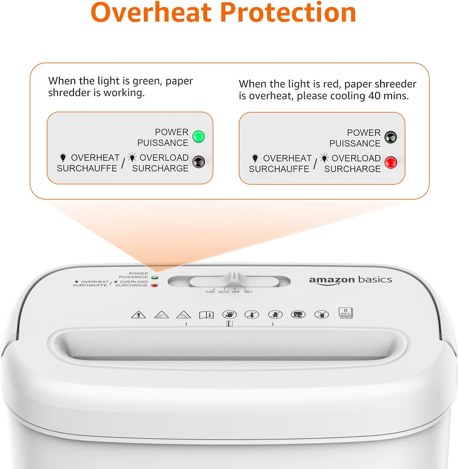 Amazon Basics Cross Cut Paper and Credit Card Shredder for Security - 8-Sheet, Heavy Duty, White