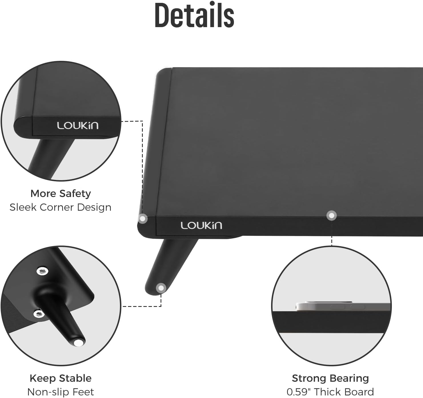 loukin Monitor Stand Riser for Desk, 22.4" x 8.3" Larger Computer Stand for Laptop, PC, Printer, Sturdy Desktop Computer Shelf with Non-Skid Rubber, Home Office (Black)