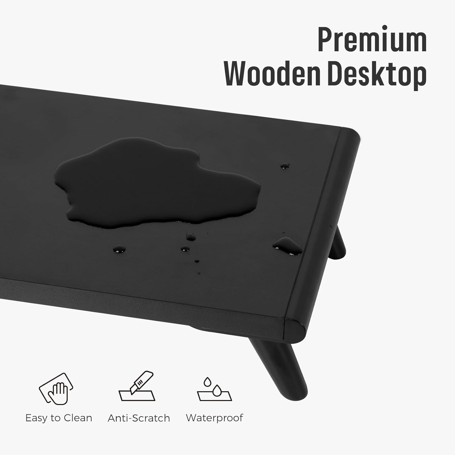 - Spacious Desktop: 22.4" x 8.2" Premium MDF board is waterproof and easy to clean. At least 7" wider space than others. It can hold an extra tablet. You can place the computer on monitor stand with the tablet and speaker. It can also be used as a laptop stand, a printer stand, and a projector stand.