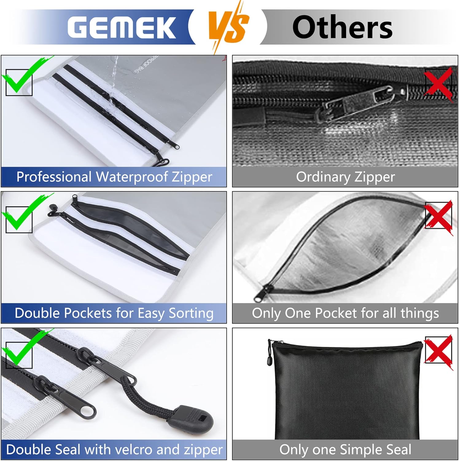 - Waterproof Design: Fireproof bag for cash and documents is sealed with 2 professional waterproof zippers that can withstand high speed spray of fire hose, providing security seal and maximum protection.