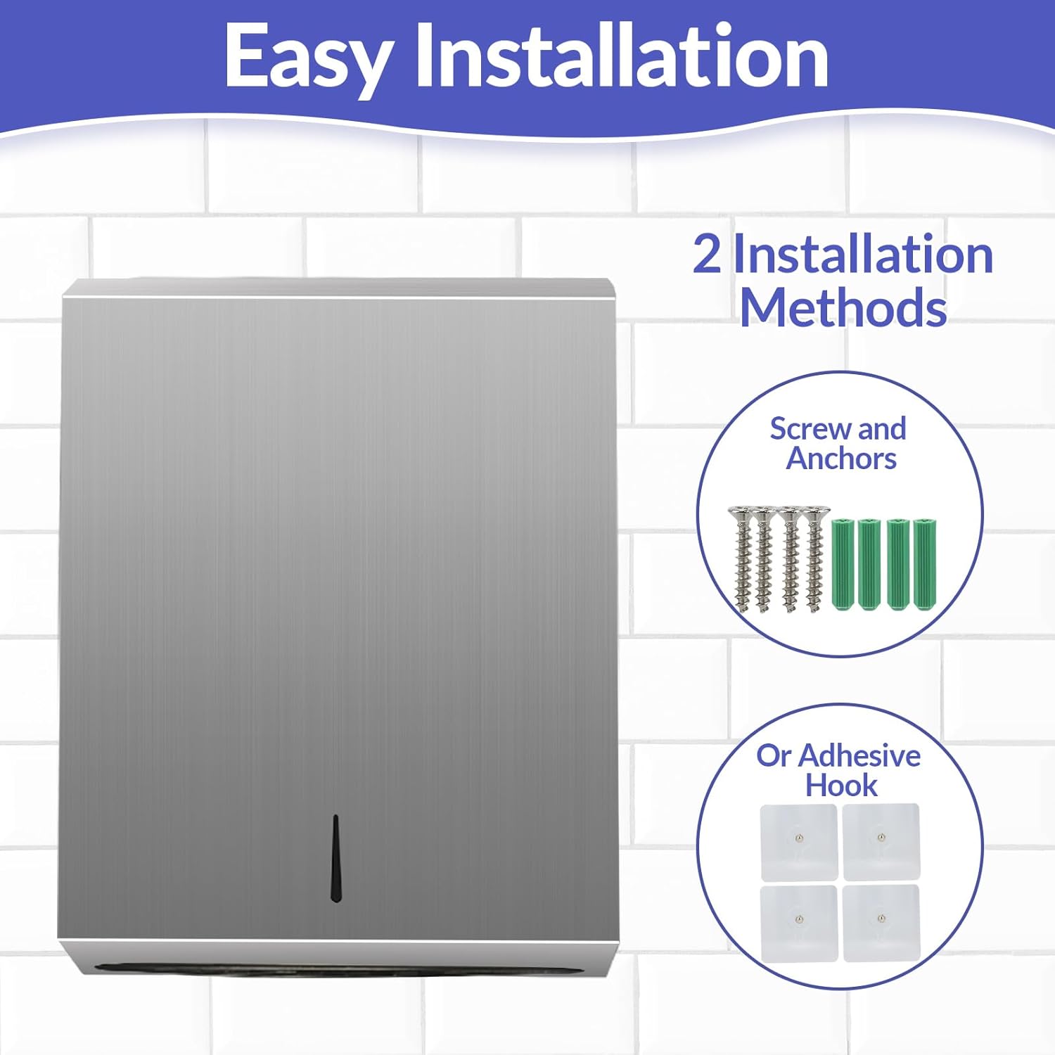 Paper Towel Dispenser Wall Mount, Brushed Stainless Steel Commercial Paper Towel Holder with Lock, Large Capacity 400 C Fold/525 Multifold Towels