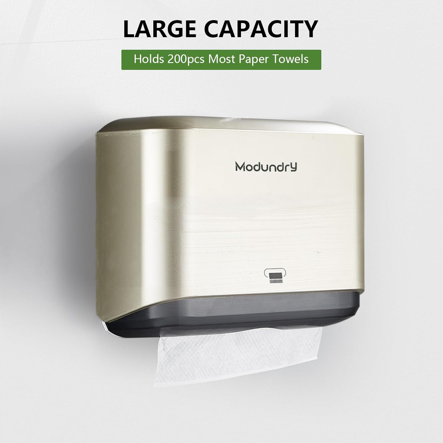 - Large Capacity: This paper towel dispensers can hold up to 200 sheets folded paper towels, C fold, Z fold, multifold, Single fold. Folded size smaller than 8.5"x 3.1“or small can be dispensed smoothly with the dispenser.