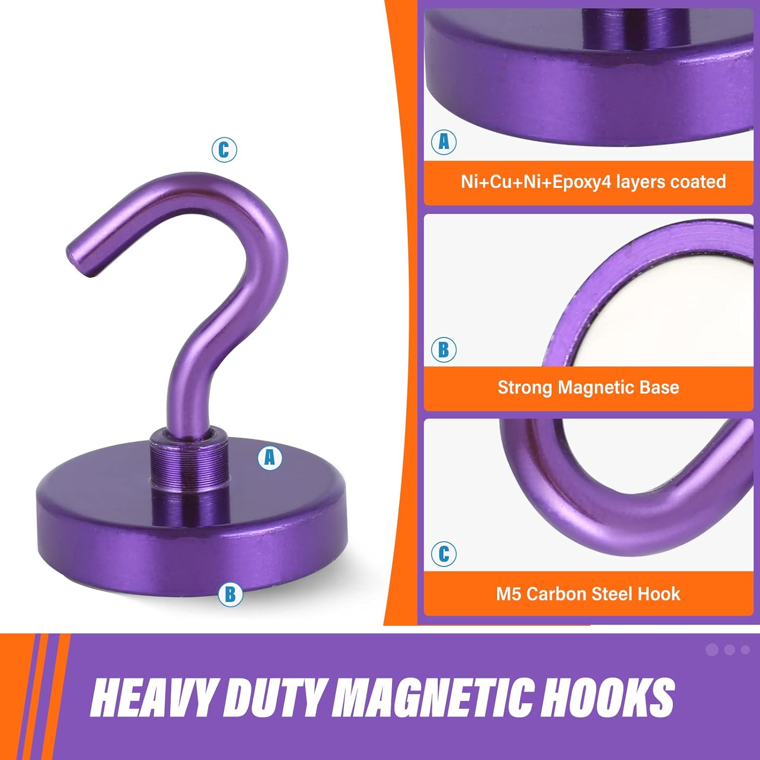 Neosmuk Magnetic Hooks Heavy Duty, Strong Magnet with Hook for Fridge, Super Neodymium Extra Strength Industrial Hooks for Hanging, Magnetic Hanger for Toolbox, Cruise, Grill(Purple,4 Pack)