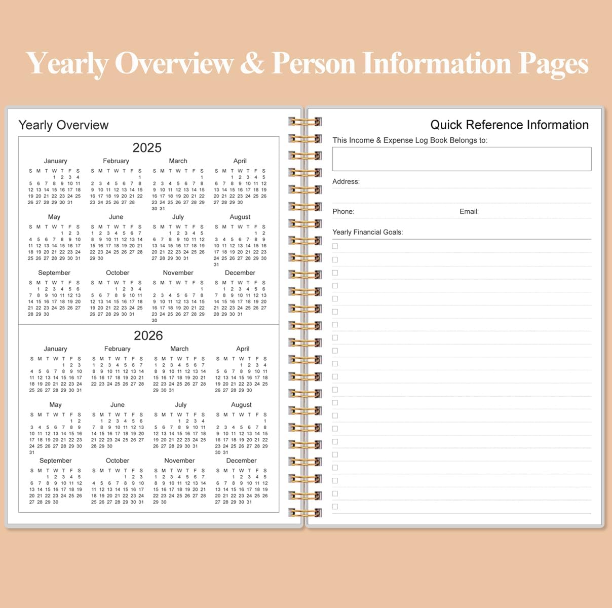 - UNIQUE DESIGN & A5 SIZE - Income and expense log book is spiral bound design, size of 5.8" x 8.3". Just the perfectly size to fit in your backpack, purse or laptop case. Without taking up your space and always helping you keep track of your small business