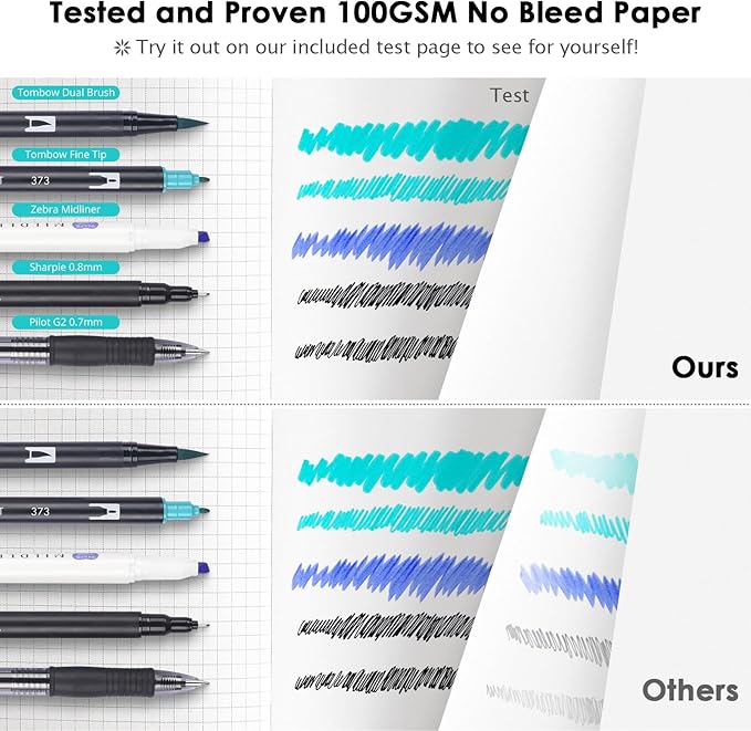 - 【Thick Paper for Writing Without Limits】Large A5 hardcover notebook (5.75"x 8.38"/145mm x 215mm), total 320 pages, includes 312 numbered pages(equal to 156 sheets). 5 x 5mm graph grid paper(5 squares per inch). Our INNOVATIVE PAPER TECHNOLOGY on 100GSM thick paper ensures a perfect canvas for your ideas - no bleed, no ghosting, as confirmed by tests with various pens.
