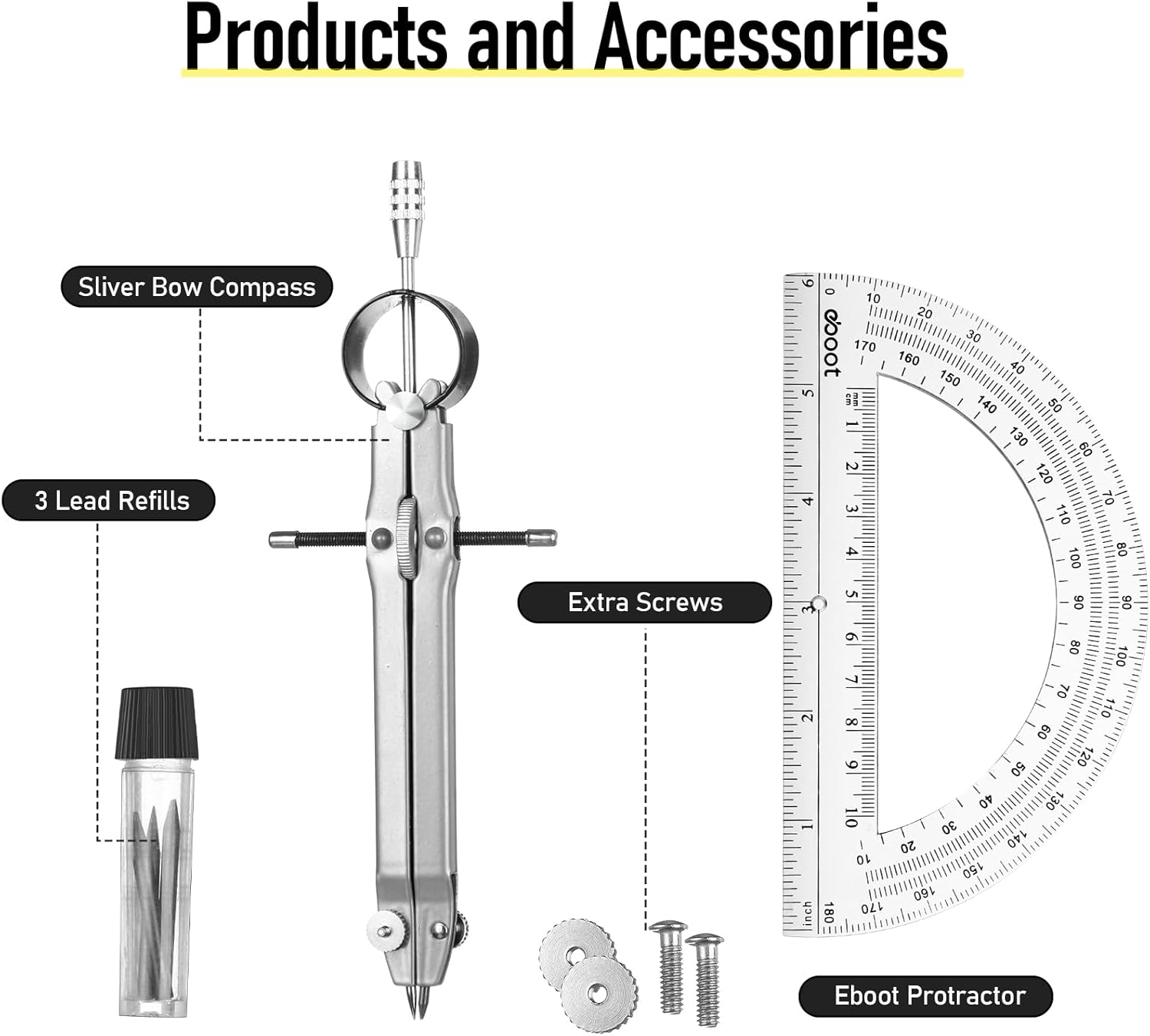 - Integrated compass package: compass comes with a clear box, contain 1 piece geometry compass and 1 box refill packaged in a transparent box, convenient for organized and carry