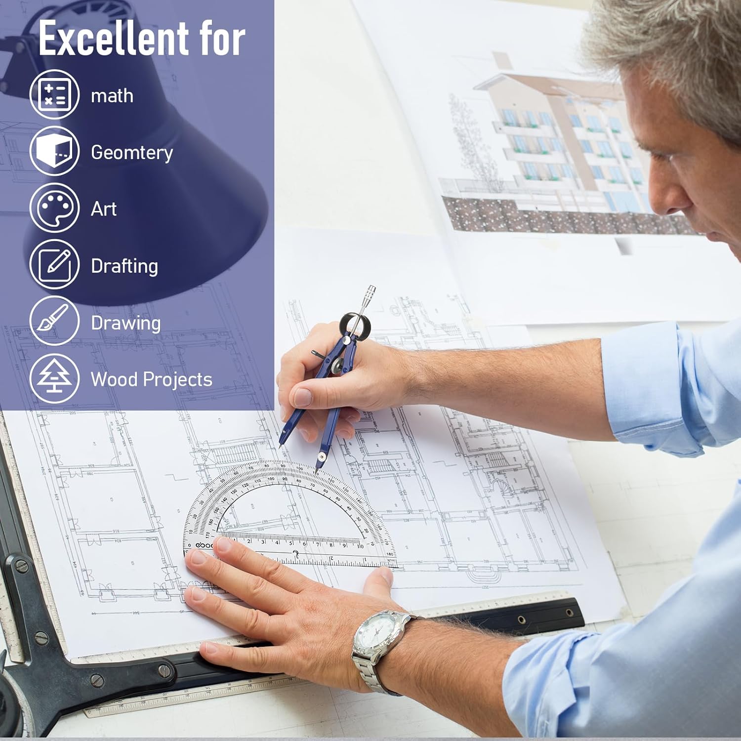 - 2 Piece math set: compass and protractor are great for drawing circle and measuring angle, good for students, teachers, engineers, designers, artists, etc.