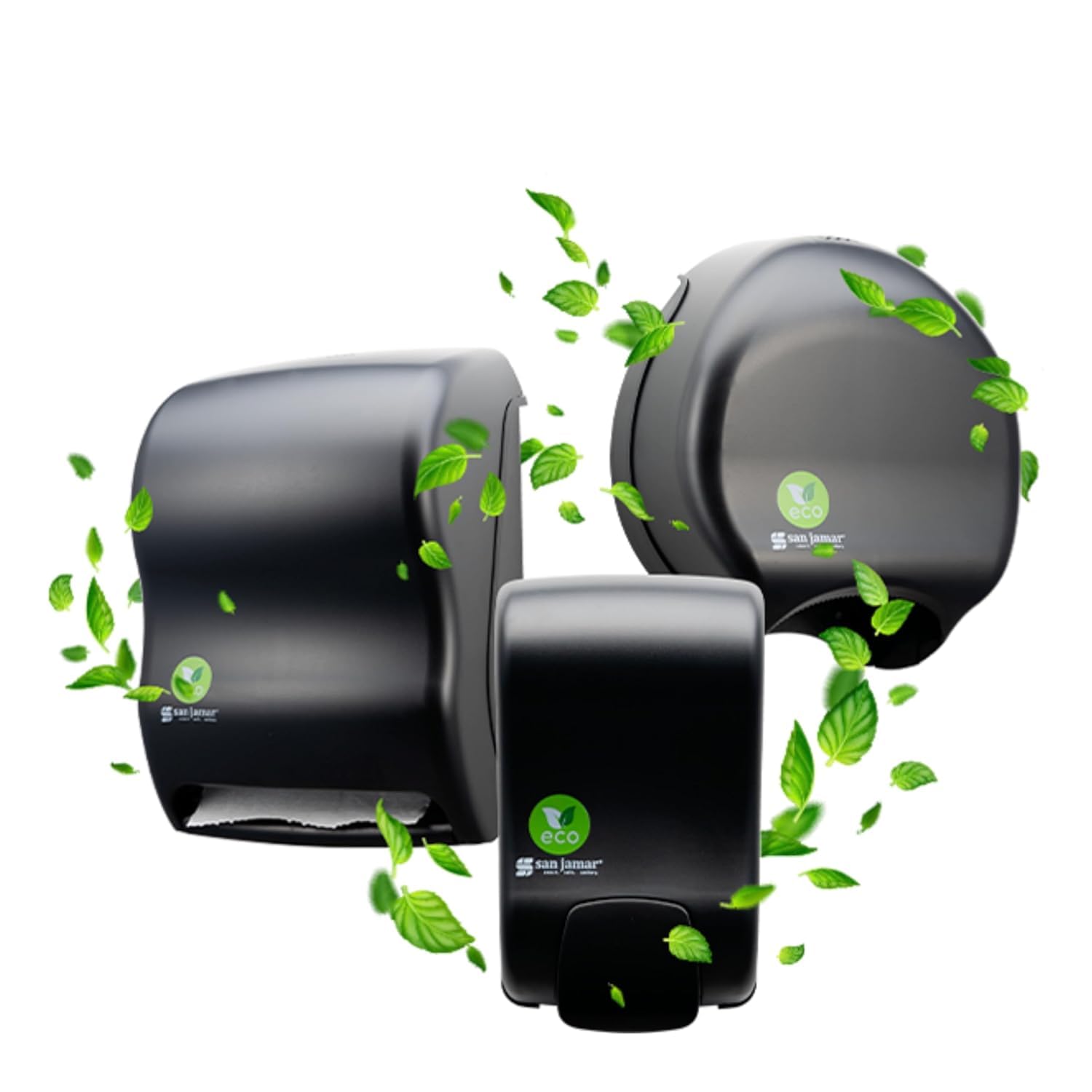 - These San Jamar dispensers, made from over 60% recycled ABS resin, promote sustainability and reduce waste, contributing to a greener environment