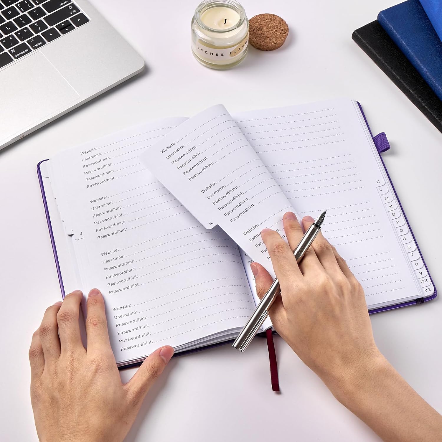 - Convenient password management with ample space: Unlike other password books, we have upgraded to individual letter indexing, providing ample space for recording passwords. Each letter has 6 pages with 4 entries per page. It enables easy recording and retrieval of various important login information, providing convenience for your password management.