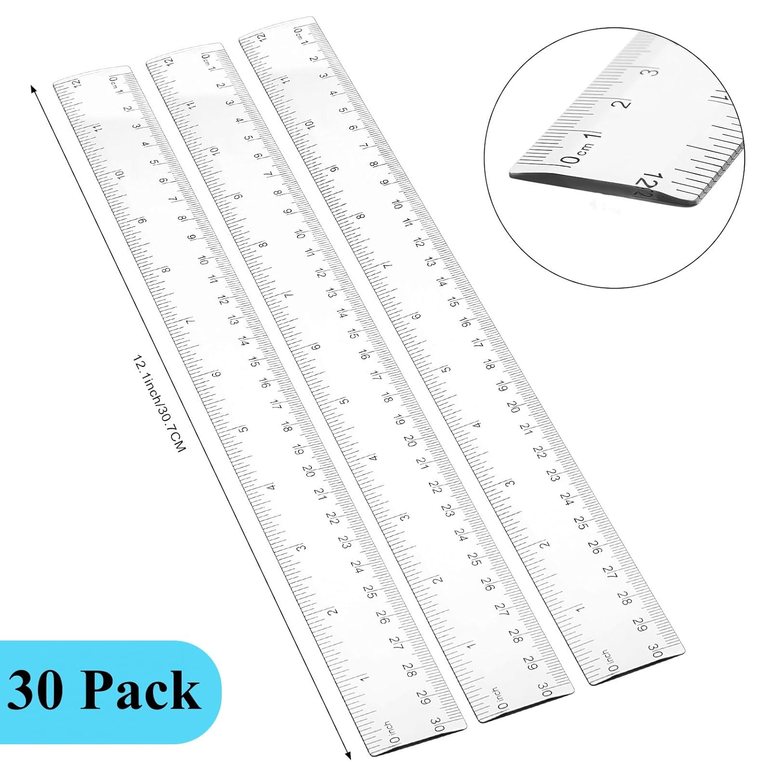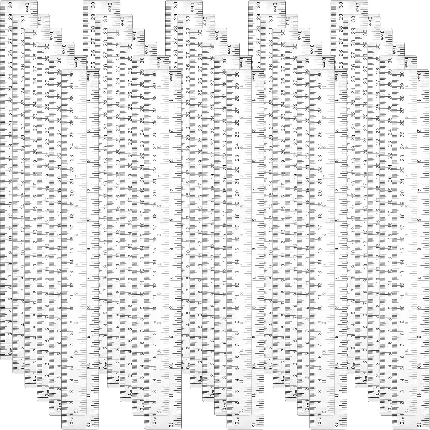 Zonon 30 Pcs 12 Inch Plastic Ruler Assorted Colors Ruler Bulk with Centimeters Millimeter and Inches Rulers First Day of School Gift for Kids School Classroom Office Supplies(Clear,Plastic)