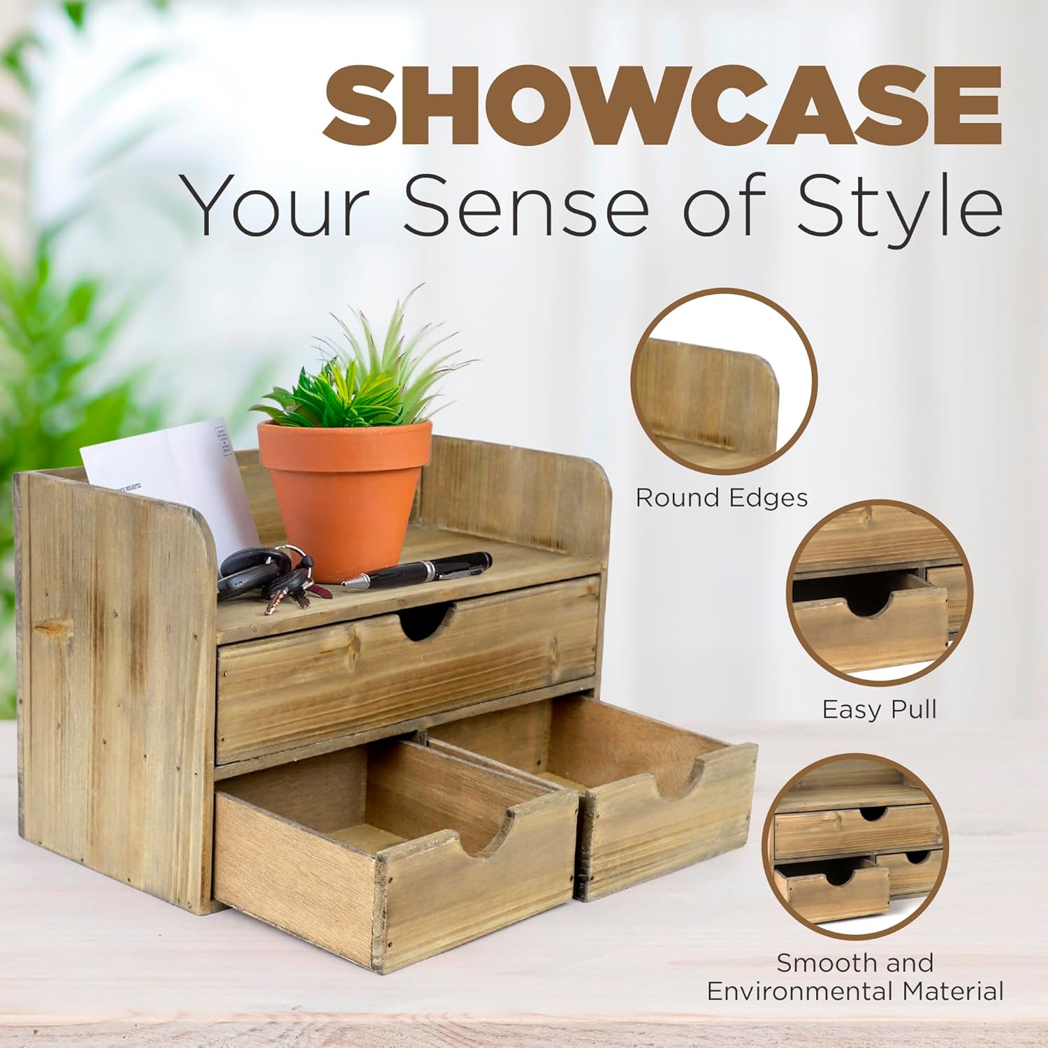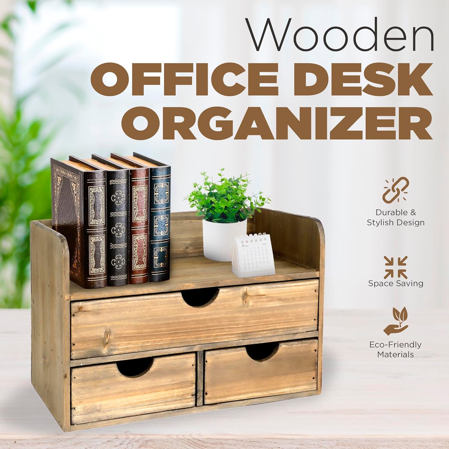 - ✅ SHOWCASE YOUR SENSE OF STYLE - Our desk storage organizer makes quite the impression with its natural, rustic wooden finish. It’s sure to catch attention with its farmhouse-inspired aesthetic.