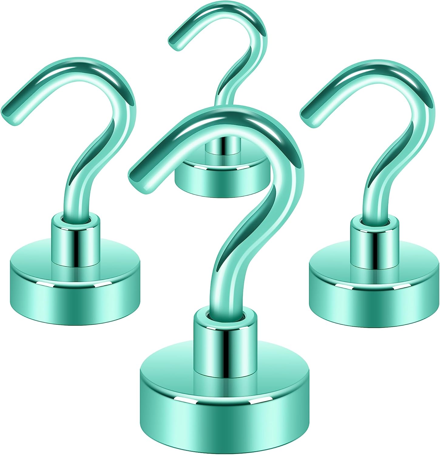 Neosmuk Green Magnetic Hooks,30lb Heavy Duty Earth Magnets with Hook for Refrigerator, Extra Strong Cruise Hook for Hanging, Magnetic Hanger for Curtain, Grill (Green, 4 Pack)