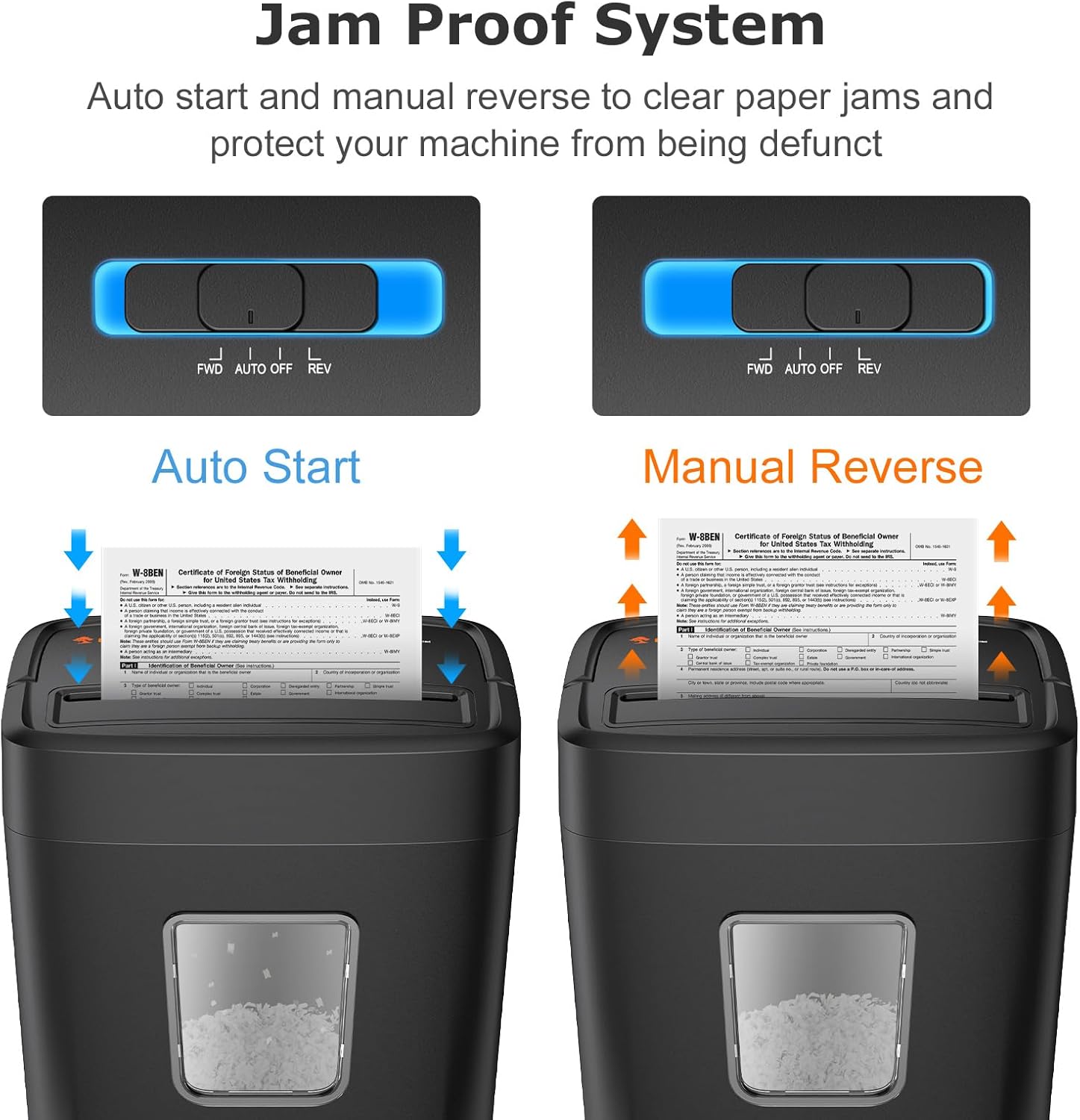 - 5 Minutes On and 40 Minutes Cool Down: This small shredder can continuously shred up to 172 sheets of paper (up to 6 sheets at a time) for 4 minutes. When overheat requires 40 minutes of cooling time