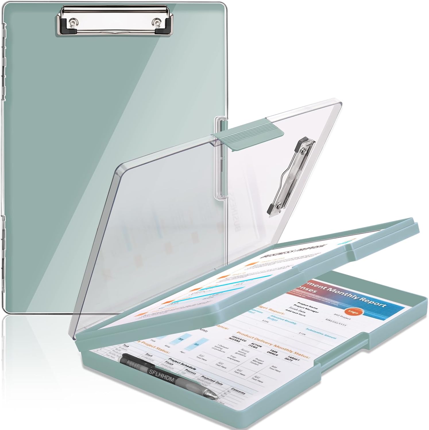- All-In-One Storage Clipboards: Dual-Layer design ensure roomy space for various needs of storage.You can keep frequently used documents on the top compartment. A second lower compartment is deep enough to store more than 300 sheets. Separate pen/pencil case for pens, markers, and other small items
