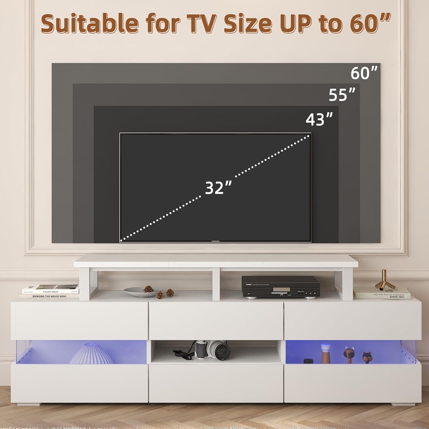 - 【Space Saving】Raise your tv, unobstructed large space underneath can be nice for sound bar, controllers and cable tv box, satellite receiver, gaming consoles such as PS4, Xbox. Get rid of the messy table, you can keep clean and tidy within seconds.