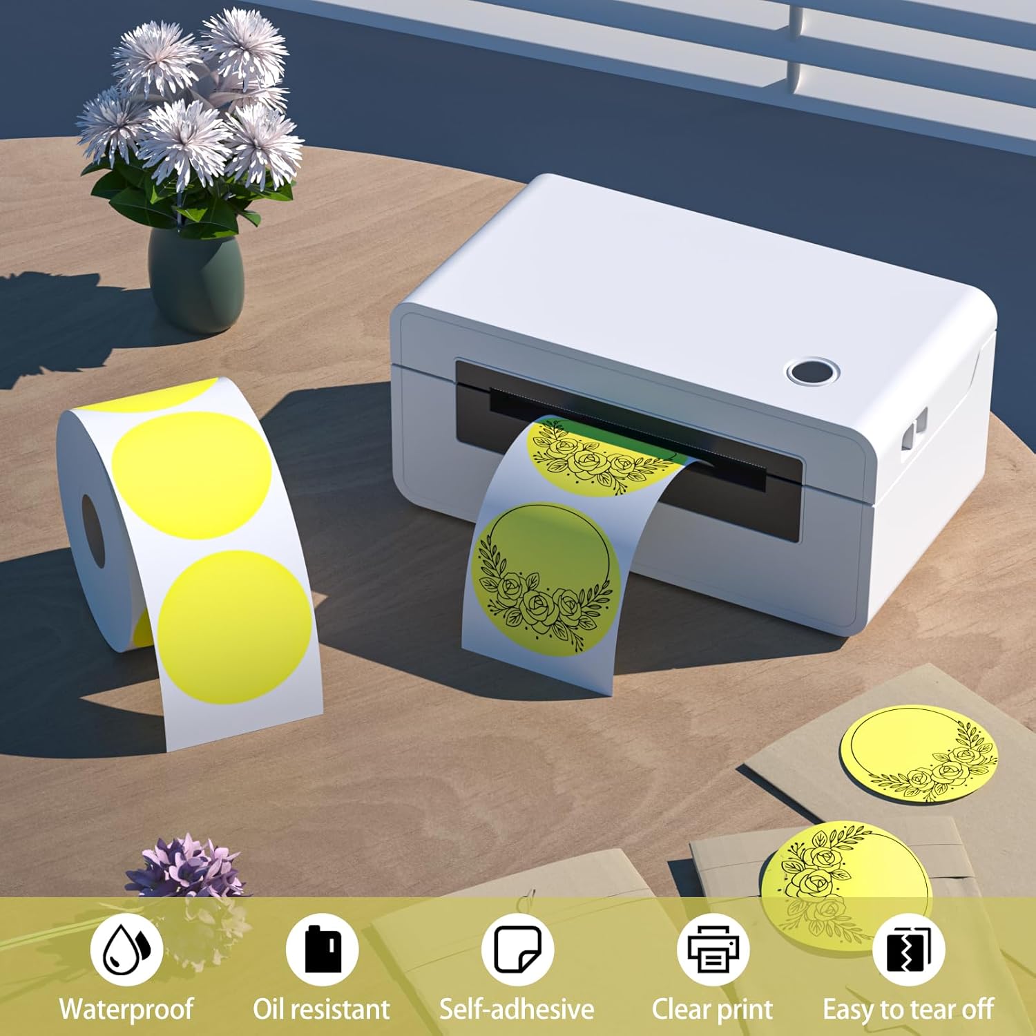 MFLABEL 750-Pack Yellow Round Labels (2 Inch) - Thermal Printer Sticker Rolls for Shipping, Organizing, Crafts & DIY (Compatible w/Direct Thermal Printers)