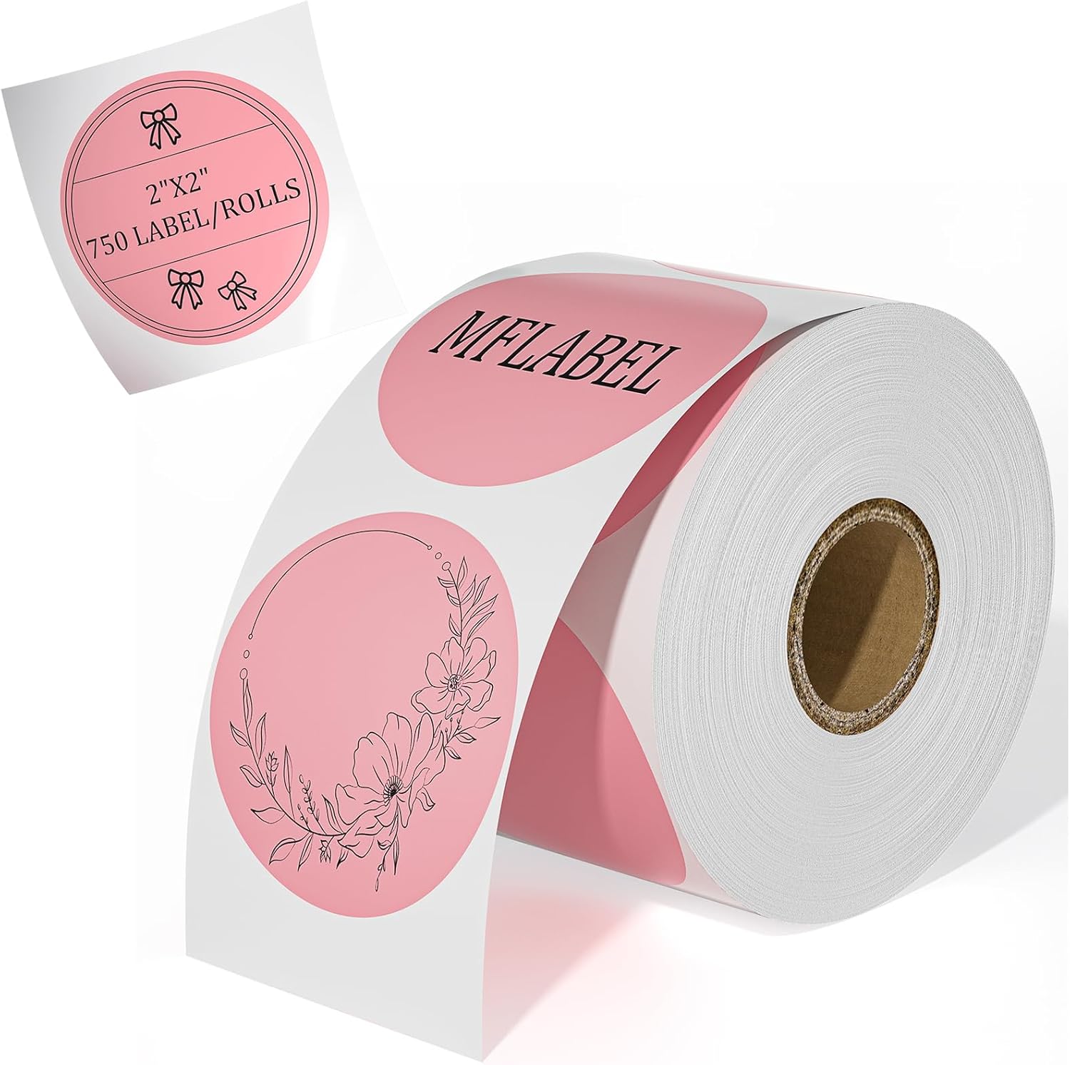 MFLABEL 750-Pack Pink Round Labels (2 Inch) - Thermal Printer Sticker Rolls for Shipping, Organizing, Crafts & DIY (Compatible w/Direct Thermal Printers)