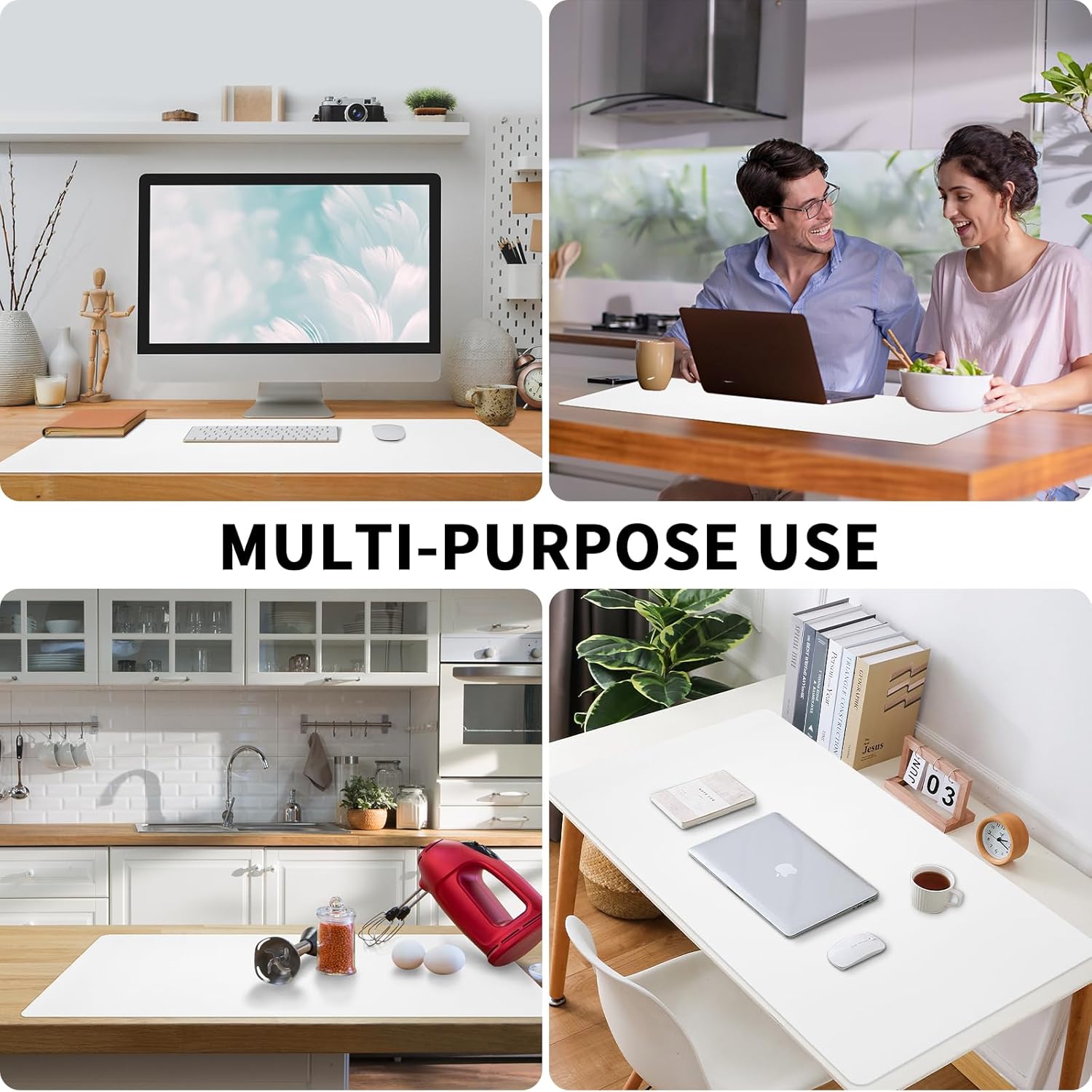 - 【Large Size Multipurpose】The 31.5×15.7 inch large size keyboard pad is large enough to hold a laptop, mouse, keyboard and mug. 2mm thickness provides you with a comfortable soft touch, you can use it as a writing pad, desk pad, mouse pad or desktop organizer for kitchen and office.