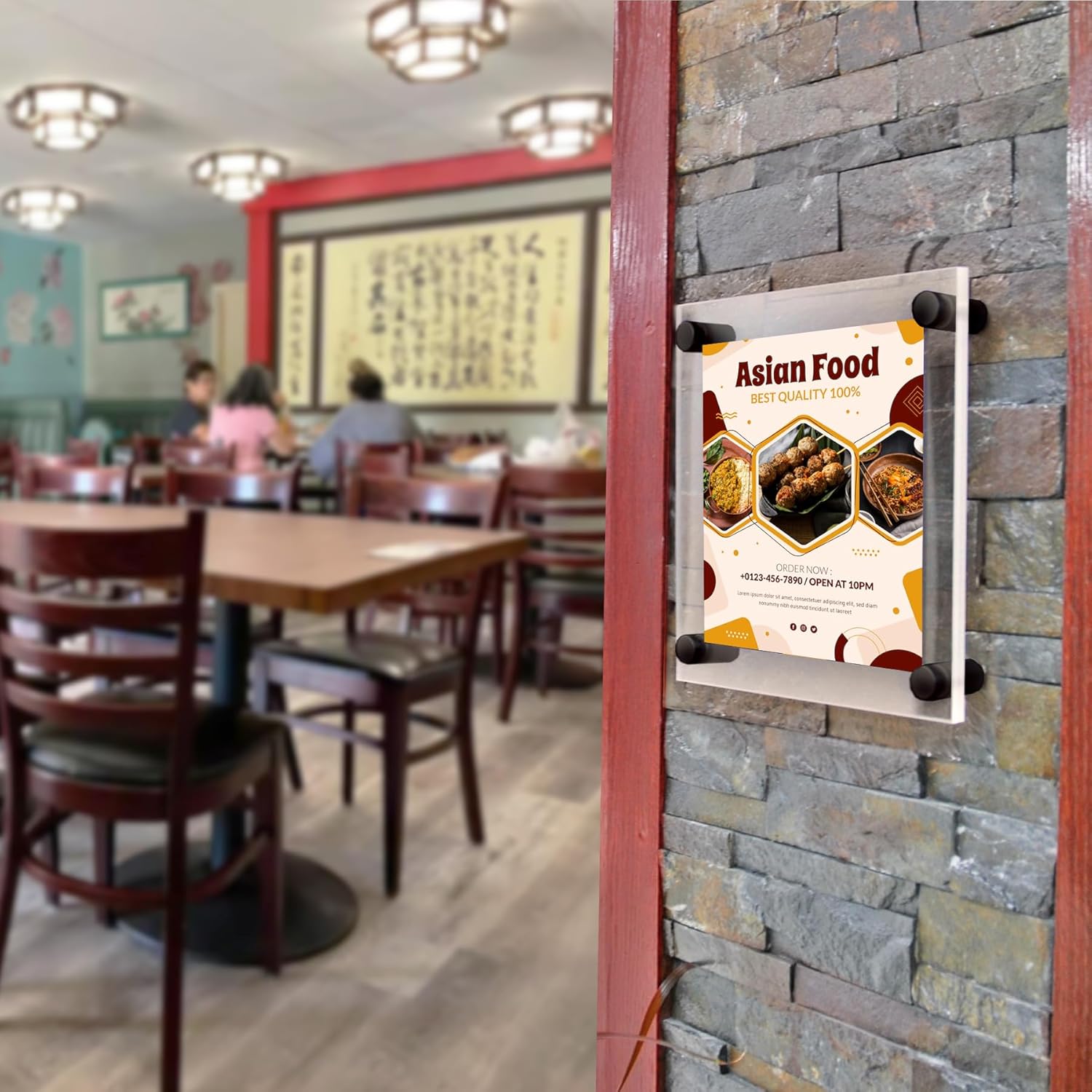 - ✅ HARDWARE INCLUDED - Each floating sign holder frame set includes 2 acrylic panels that are 3/16” thick, 4 standoff caps and hanging hardware. Note: Large format sizes: 24” x 36” and 30” x 40” include 6 standoffs and caps.