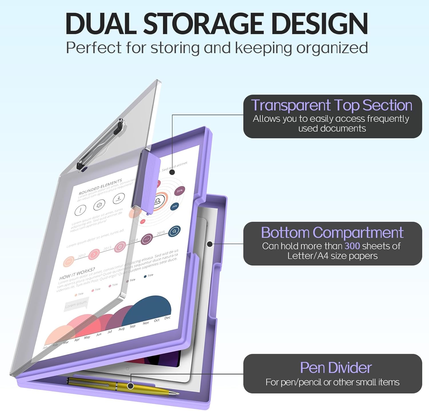 Sooez Clipboard with Storage, Heavy Duty Cleaview Clip Boards 8.5x11 with Dual Storage, Dry Erase Plastic Nursing Clipboard, High Capacity Clipboards Folder for Teacher Nurse, School & Office Supplies