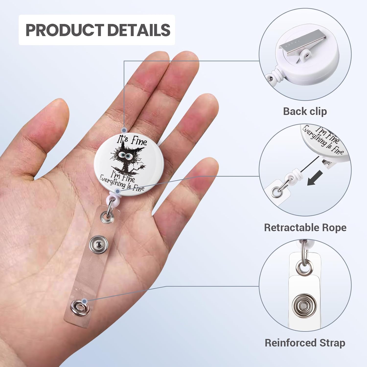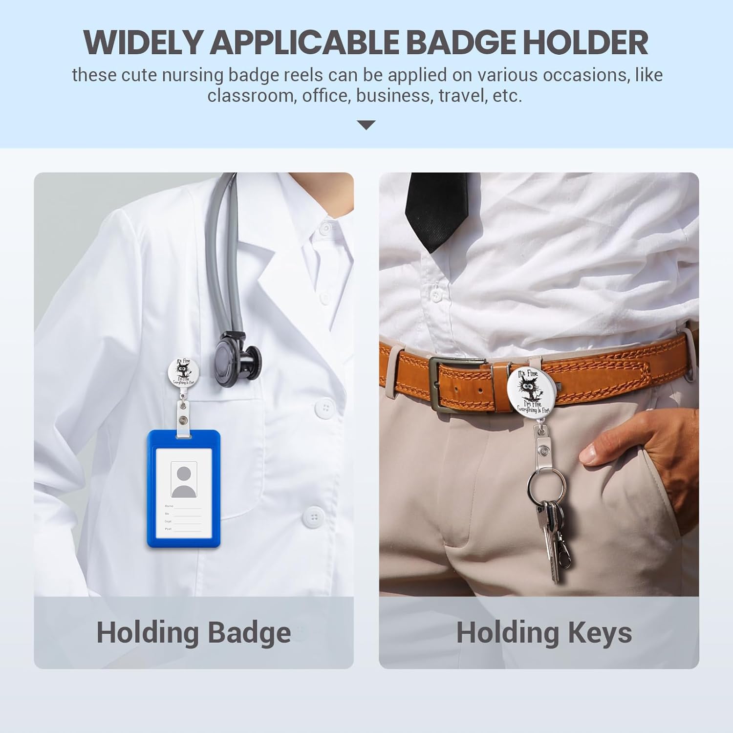 Nurse Badge Reel, Funny ID Badge Clip, Cute Badge Holder, This is Fine Cat Badge Reels Retractable, Office Lanyard Accessories, Nursing Student Gifts