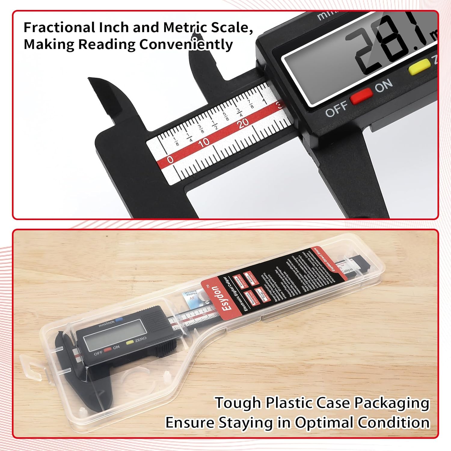Digital Caliper, Esydon Upgraded Calipers 6 inch, Measuring Tool, Electronic Ruler, with Large LCD Screen, Auto-Off Feature, Inch and Millimeter Conversion, Plastic Case, Perfect for Household, DIY