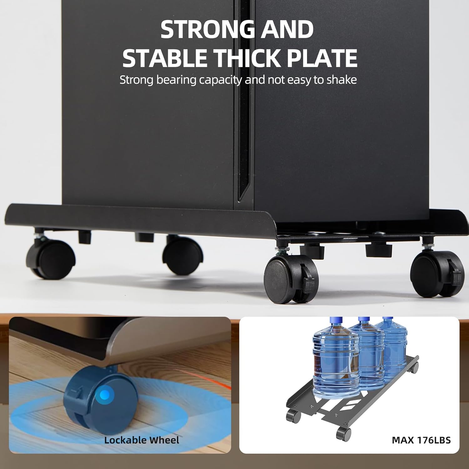 - Sturdy Pc Stand: Sturdy computer tower stand made of high grade steel materials, with strong load-bearing capacity, withstands 176 LBS and stable structure, which can ensure the safety of the computer tower. additional 39.4" cable sleeve and cable management clip