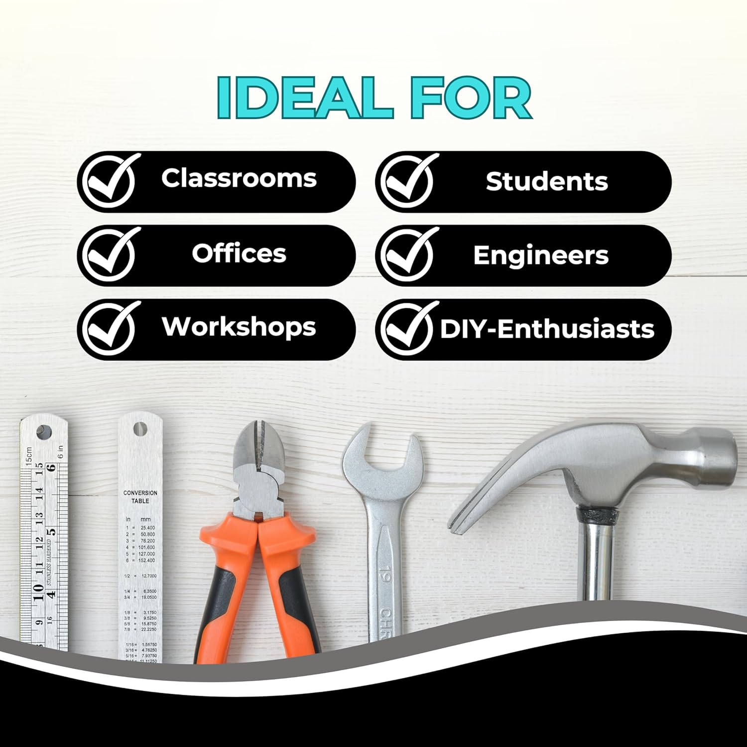 - Ultimate Convenience in Compact Size - Our 10-pack offers high-grade 6-inch stainless steel rulers. Perfect for on-the-go measurements, crafting, and small drafting projects. Fits in your pocket!