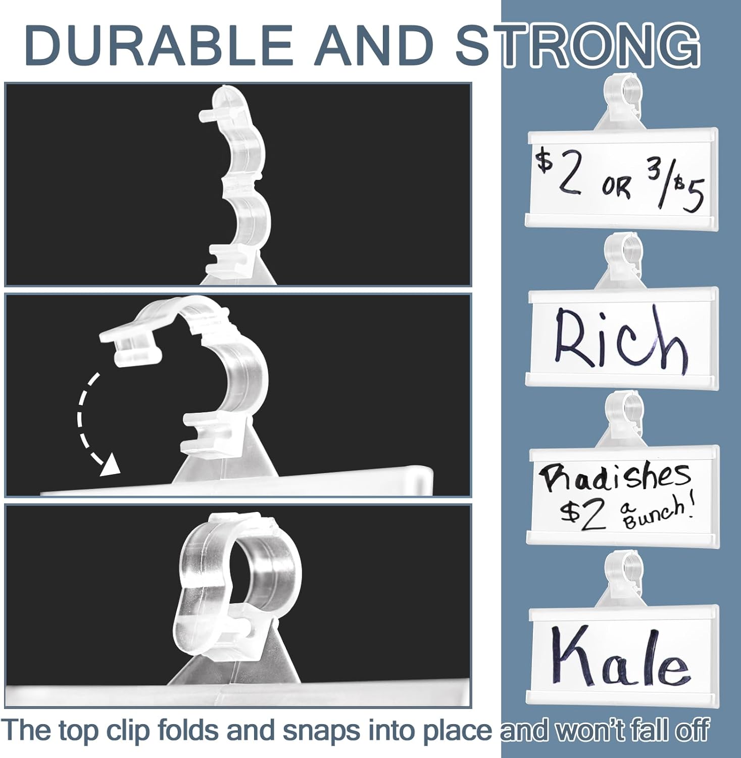 100 Pieces Plastic Wire Shelf Label Holders, Reusable Price Label Holder with locks, Label Display Holder for Retail Supermarket Department Store(3'' x 1.4'')