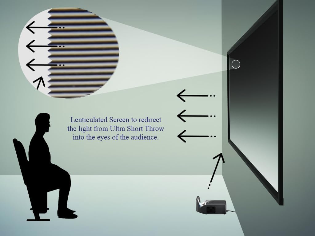 - ECLIPSE UST Ambient light rejecting (ALR) material made specifically for UST projectors. Extemely wide viewing angle and recommeneded for all rooms types. Ultra Short Throw projection only. Material must be oriented towards the projector under the screen. Projector can't be ceiling mounted. Recommended for only for UST (Ultra Short Throw) projectors with 2700 lumens or greater.