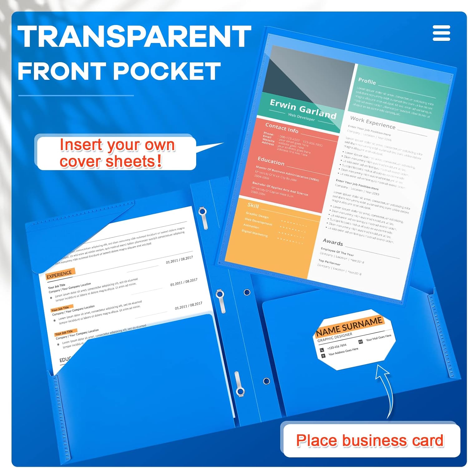 - Practical Pocket Design: our plastic folder with pockets and prongs are designed with clear front pocket, which can hold your card, not easy to fall off, stable and not easy to fold, easy for you to take the card and put the card, helping keep your paper bound documents organized and neat