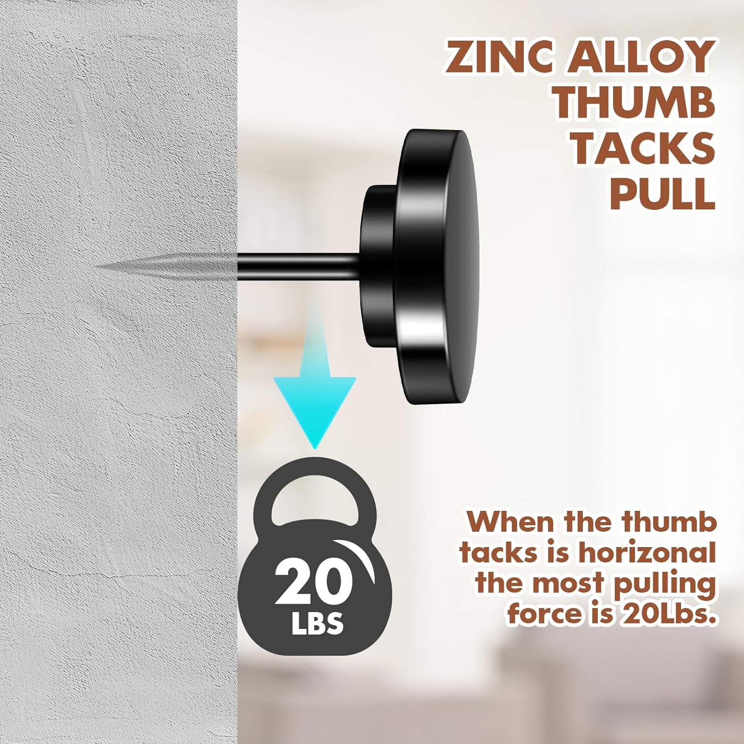 - 【Easy Installation】In the shape of ordinary push pins with black color, these metal push pins are easy to install without causing damage to your walls. Simply tap them in with minimal effort using a picture hanging tool, and you're ready to showcase your favorite wall art or decorations, these metal push pins and picture hanging hooks are perfect for heavy-duty use.