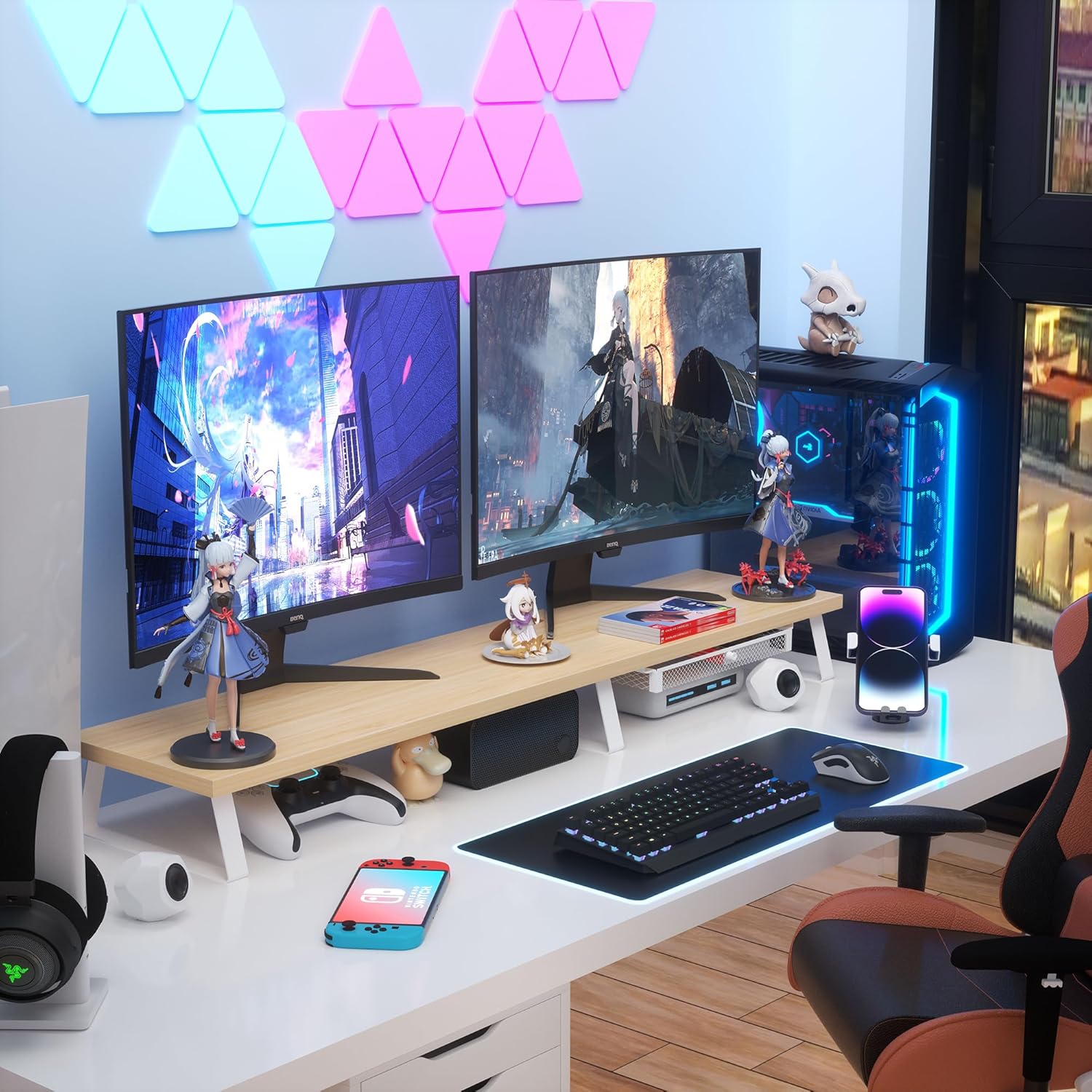 Aothia Dual Monitor Stand Riser - Monitor Stand with Drawer,Monitor Stand For 2 Monitors, Desk Shelf For Monitor with Metal Legs, Wood Monitor Stand with Storage Organize For Pc,Laptop,Screen (Oak)