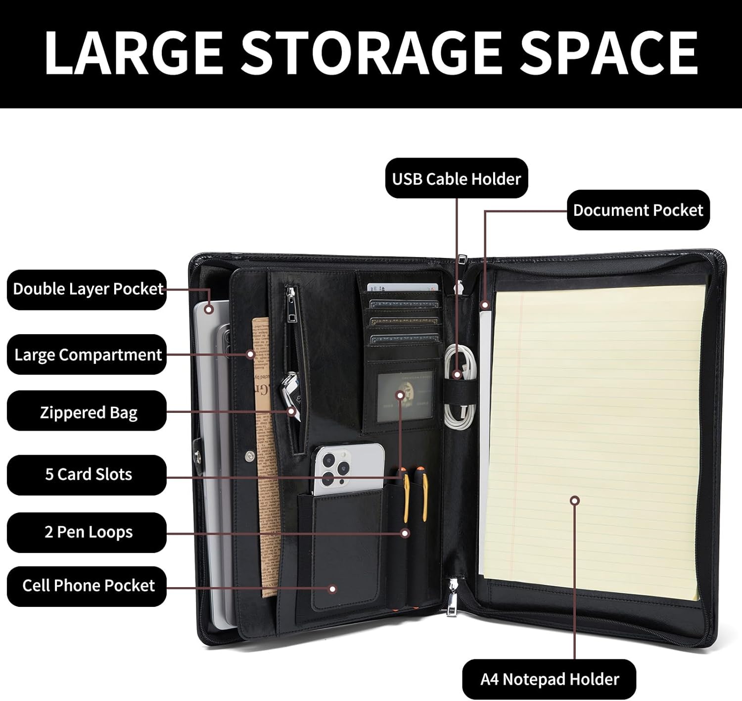 - 8.5" x 14" Legal Pad Holder: By having a dedicated notepad holder, you can streamline your workflow and enhance productivity. Having your notepad readily available within your portfolio allows you to capture ideas, take notes, or draft sketches whenever inspiration strikes or information needs to be recorded, enabling seamless workflow and efficient organization of thoughts.