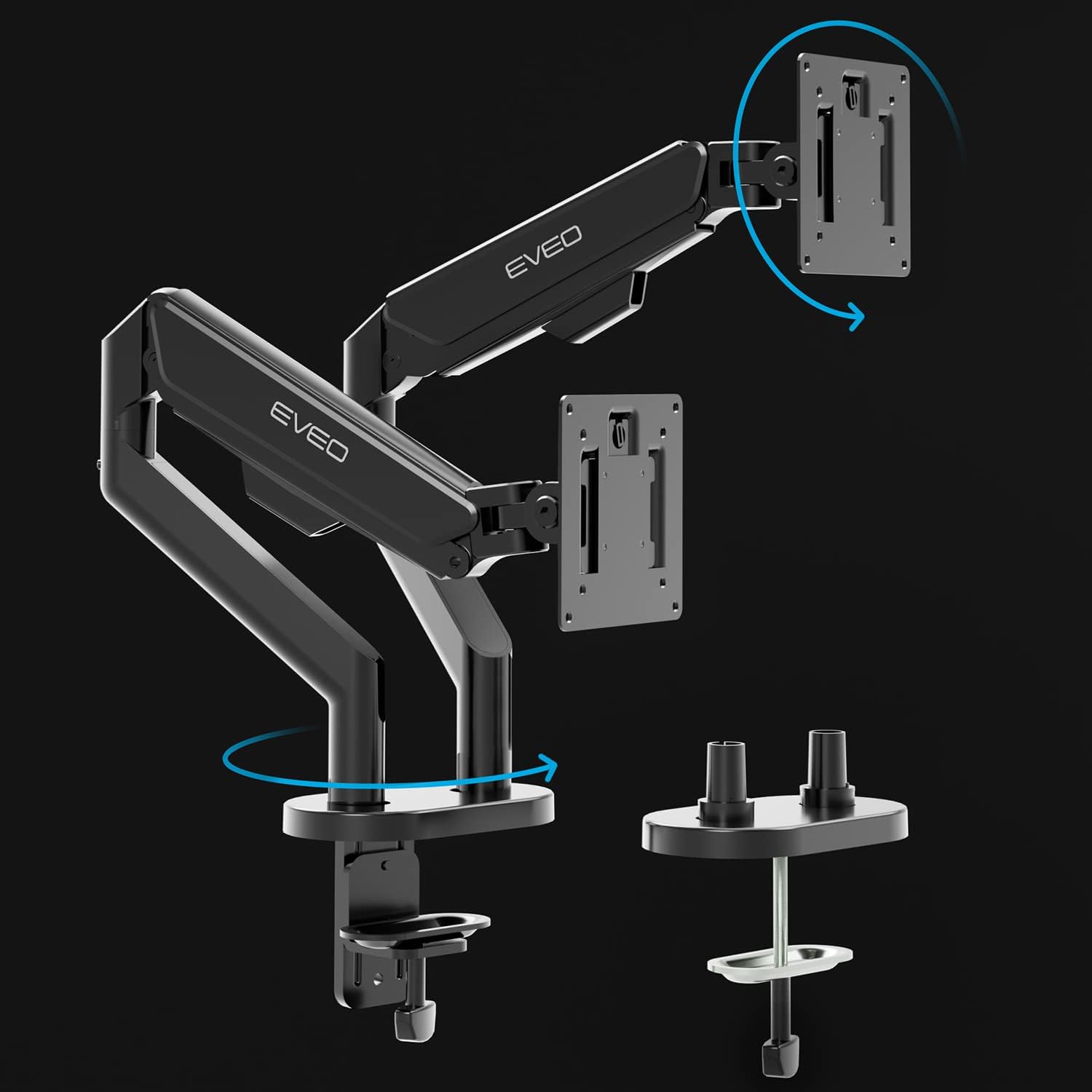 EVEO Premium Dual Monitor Mount 14"-35” Dual Monitor Arm VESA Bracket Adjustable Height Gas Spring Dual Monitor Stand, Screen Full Motion Dual Monitor Arm-Computer Monitor Stand for 2 Screens - Red