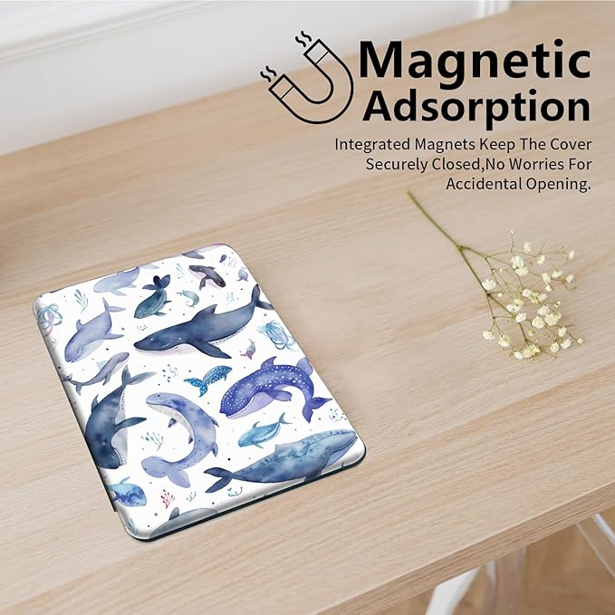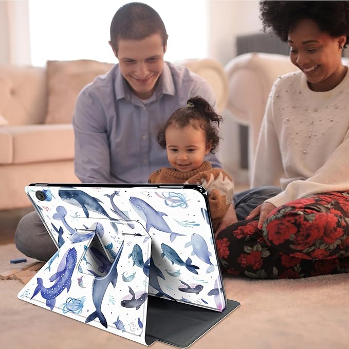 for All-New Amazon Kindle Fire 7 Tablet Case(12th, 2022 Release),Fire 7 Tablet Case,360 Degree Rotating Stand Smart Protective Case, for Fire 7 2022 Tablet (7” Display),Watercolor Whale