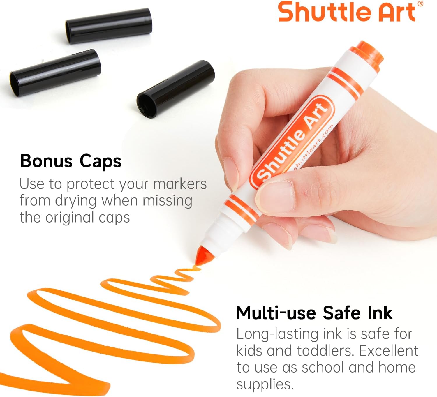 Shuttle Art 264 Pack Washable Markers, 12 Assorted Colors Broad Line Conical Tip Large Markers Bulk with a Box, Bonus Caps, Home Classroom School Supplies for Toddlers Kids Adults Students Teachers