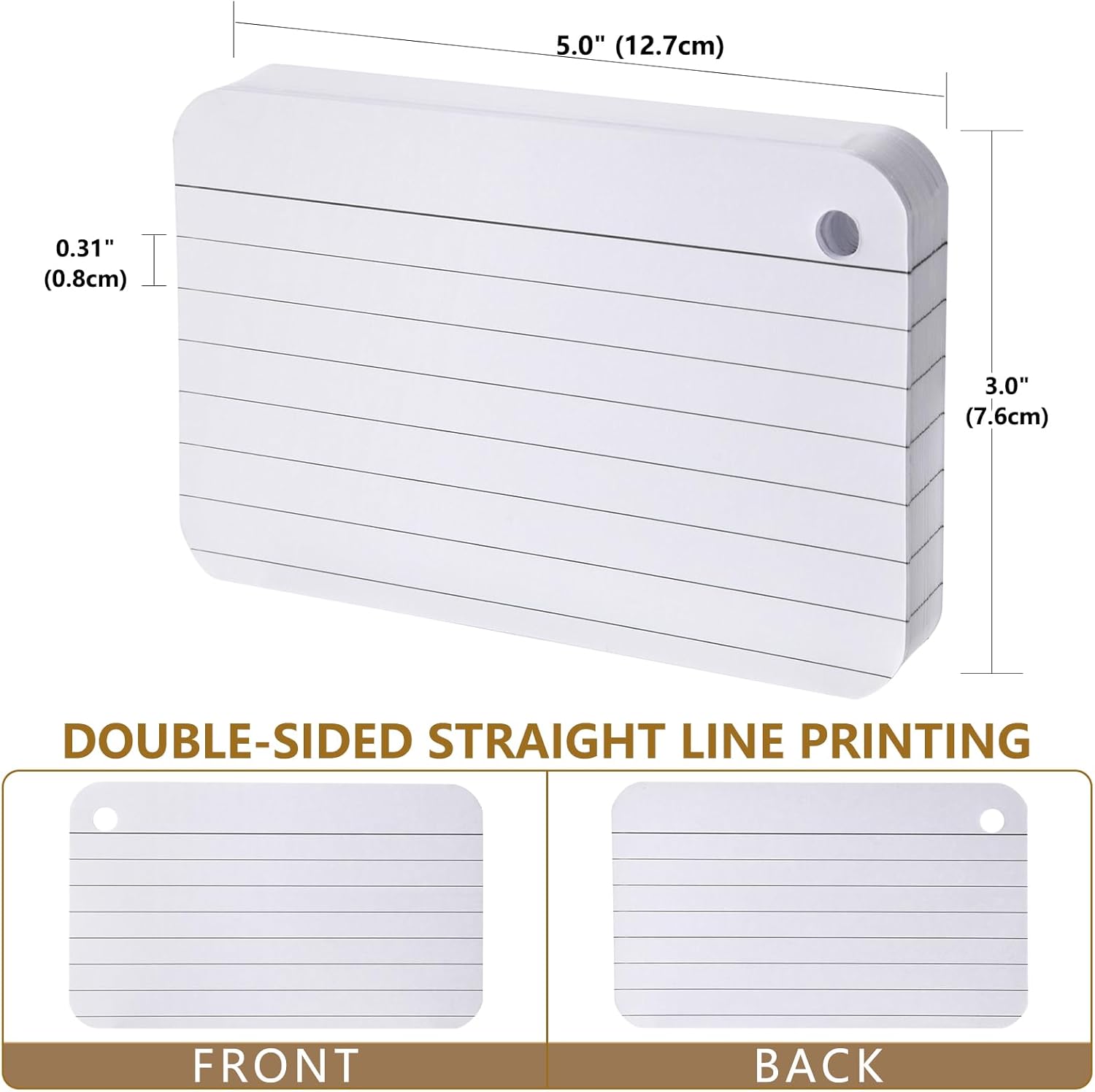 - Dimensions:Our punched lined flash cards with holes are about 3x5 inches, lightweight and portable for bags and pockets.