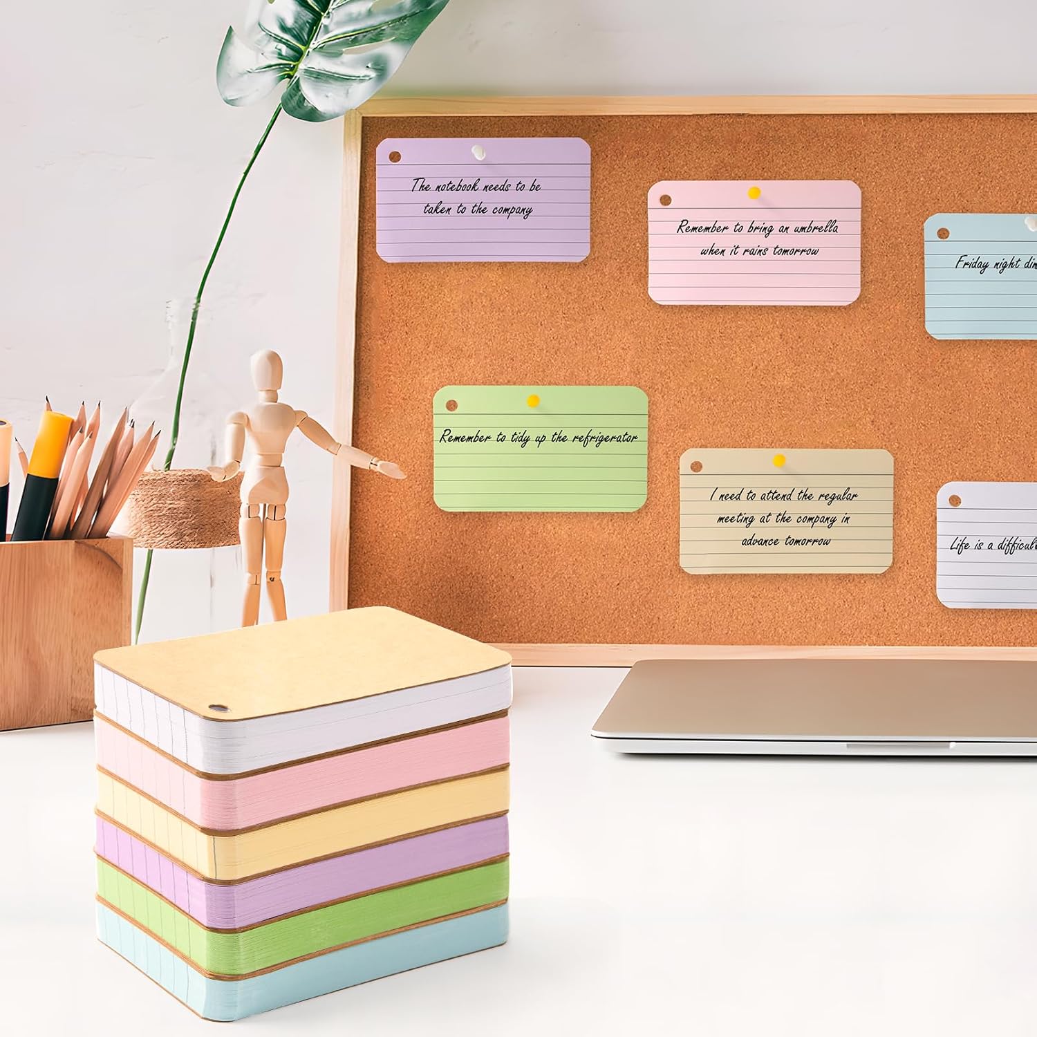 6 Pack Lined Index Cards 3 x 5 Inches, 600 Pcs Colored Ruled Index Flashcards Lined Flash Cards with Rings for Study, Office and Home