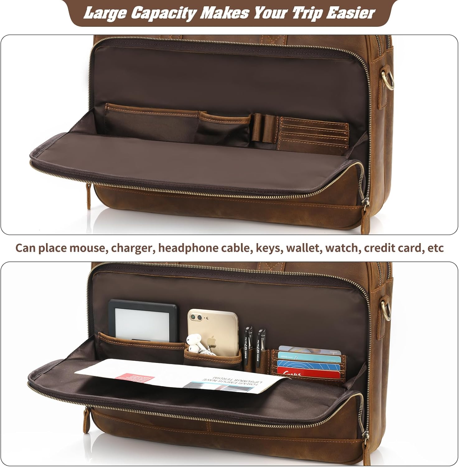 - Perfect Gift:This leather laptop briefcase bag is a great gifts for men like Father’s Day, Mens Birthdays, Valentine’s Day, Christmas Day, Graduation, Back To College Or Any Occasion. Great gift for professionals, artists, students, business man and all sorts of officials. The bag can be used as a shoulder bag for men.