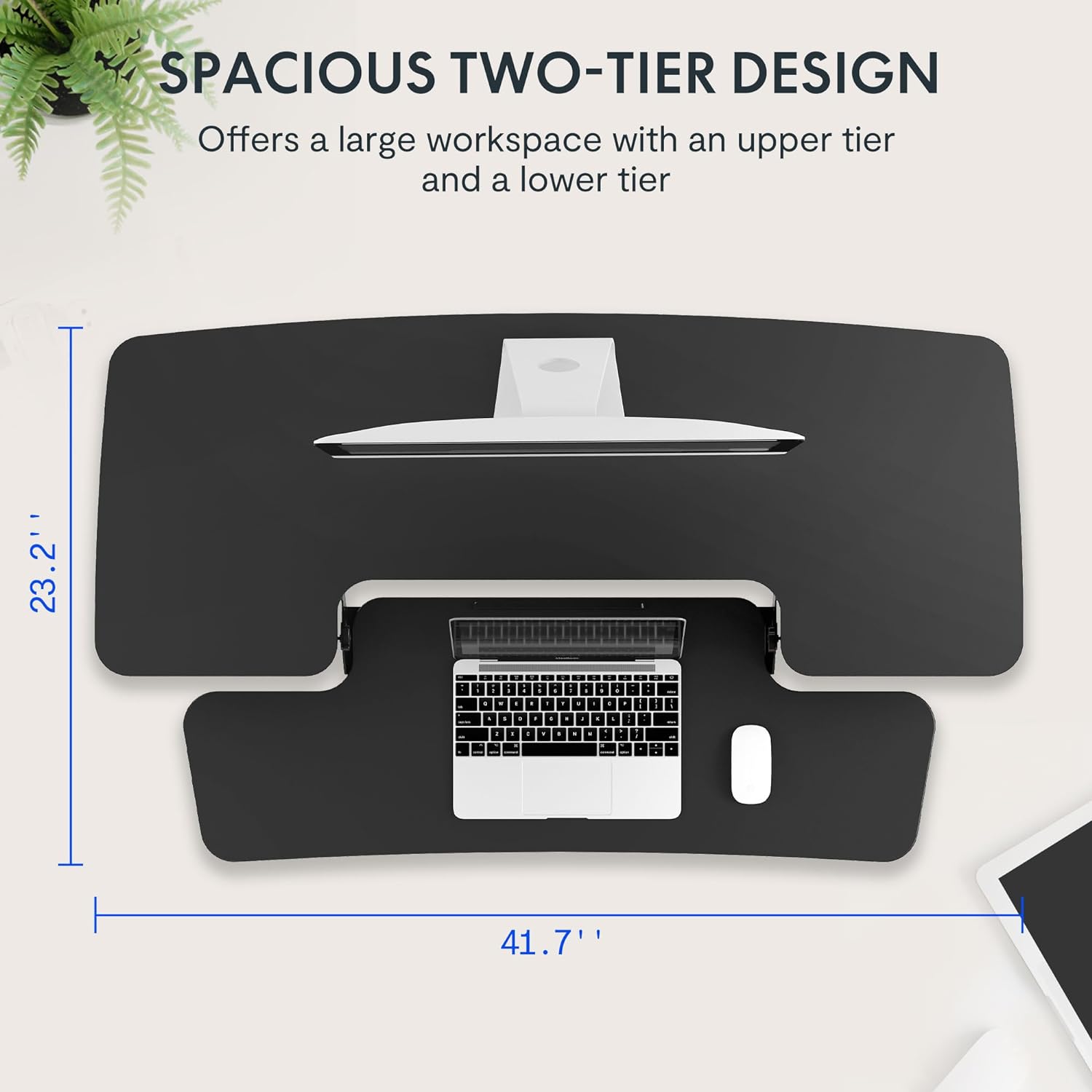 - Double Layer Office Space: This adjustable standing desk converter with a wide desktop is super space-saving and has enough space for all of your gadgets, it can hold a computer monitor, paperwork, and tablet, phone, notebook, coffee, and so much more! An oversized keyboard tray that accommodates flexible setup options.