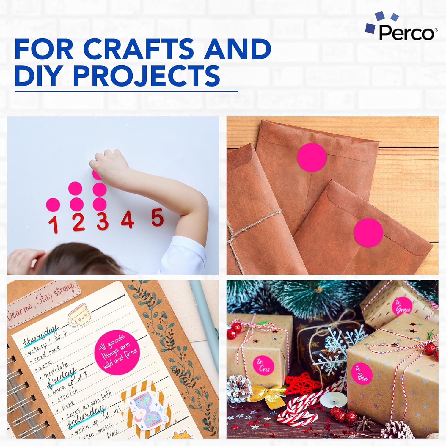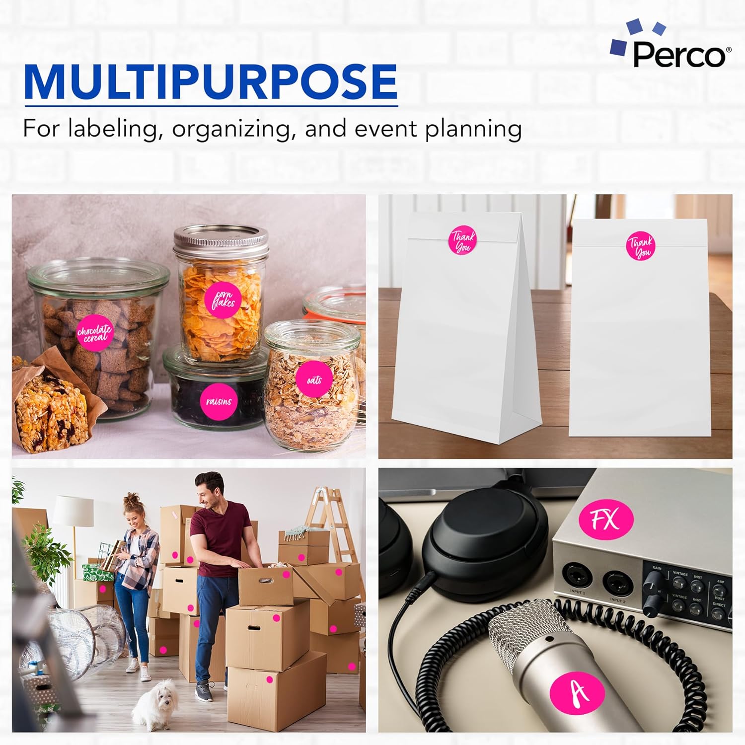 Perco Fluorescent Pink 2-Inch Round Circle Dot Sticker Labels with Easy Peel Perforation - 500 Labels per Roll - Strong Adhesion, Vibrant Colors for Organizing, Crafting & More - Made in USA