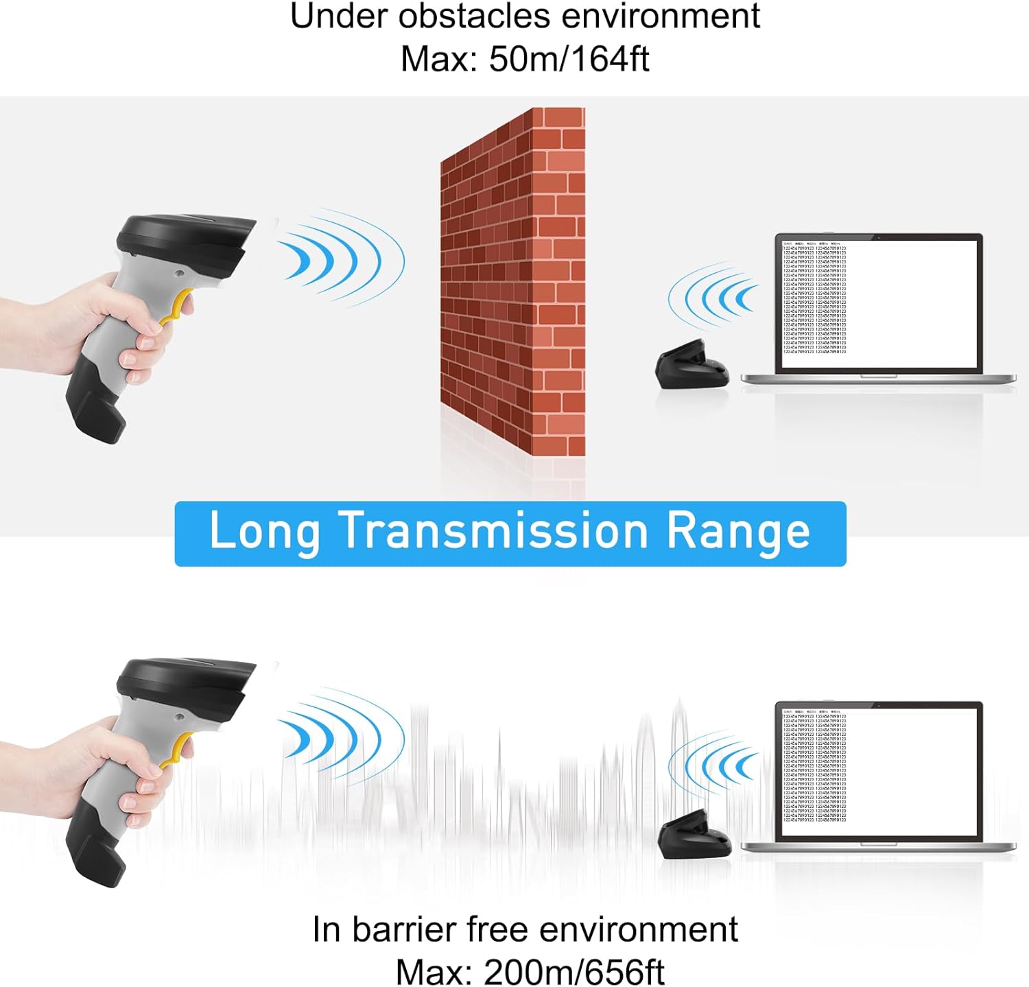 Barcode Scanner Wireless, Onewscan 1D Barcode Reader with Stand, 2.4G Wireless & USB Wired Connection Plug and Play Handheld Bar Code Scanners
