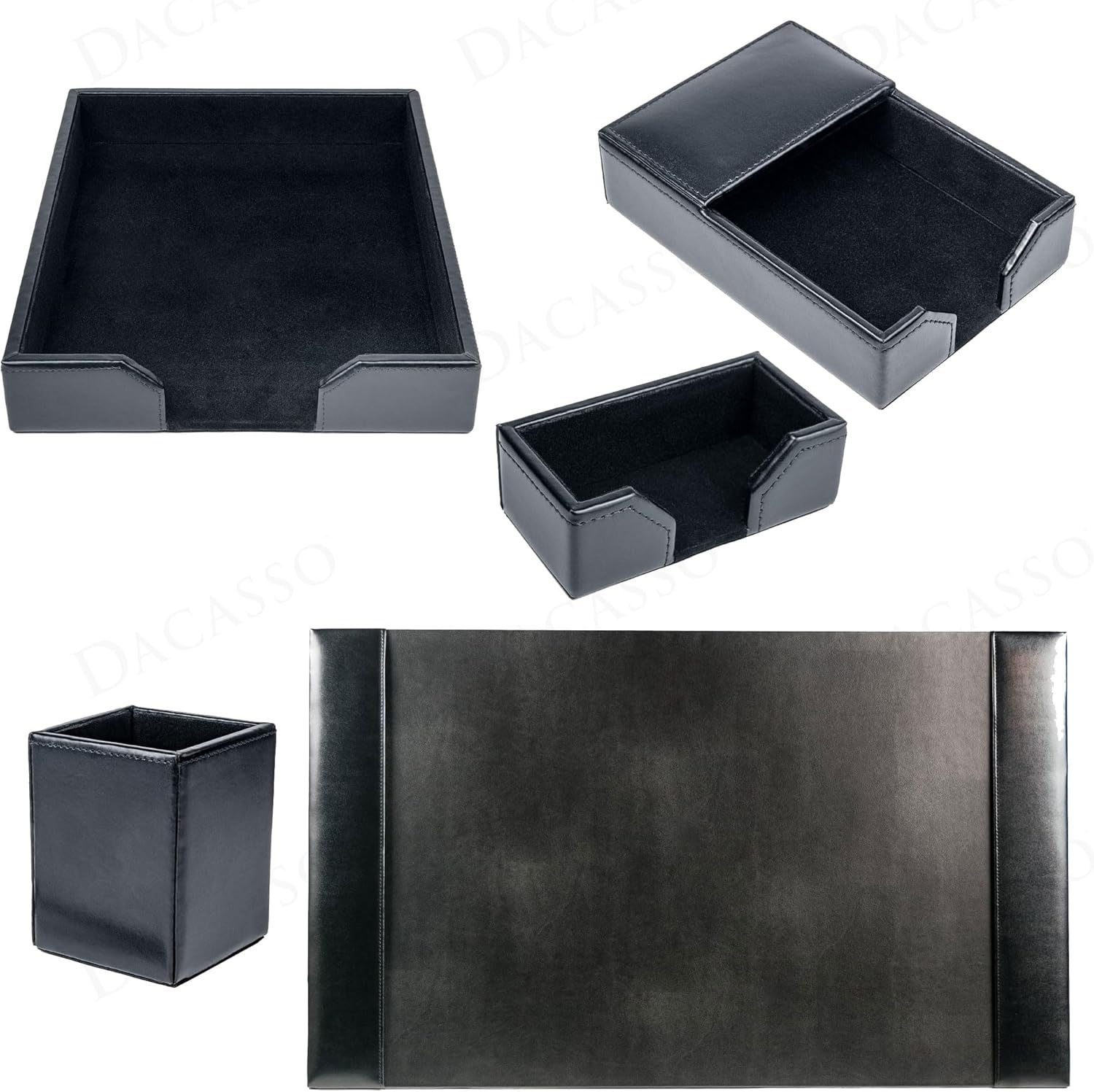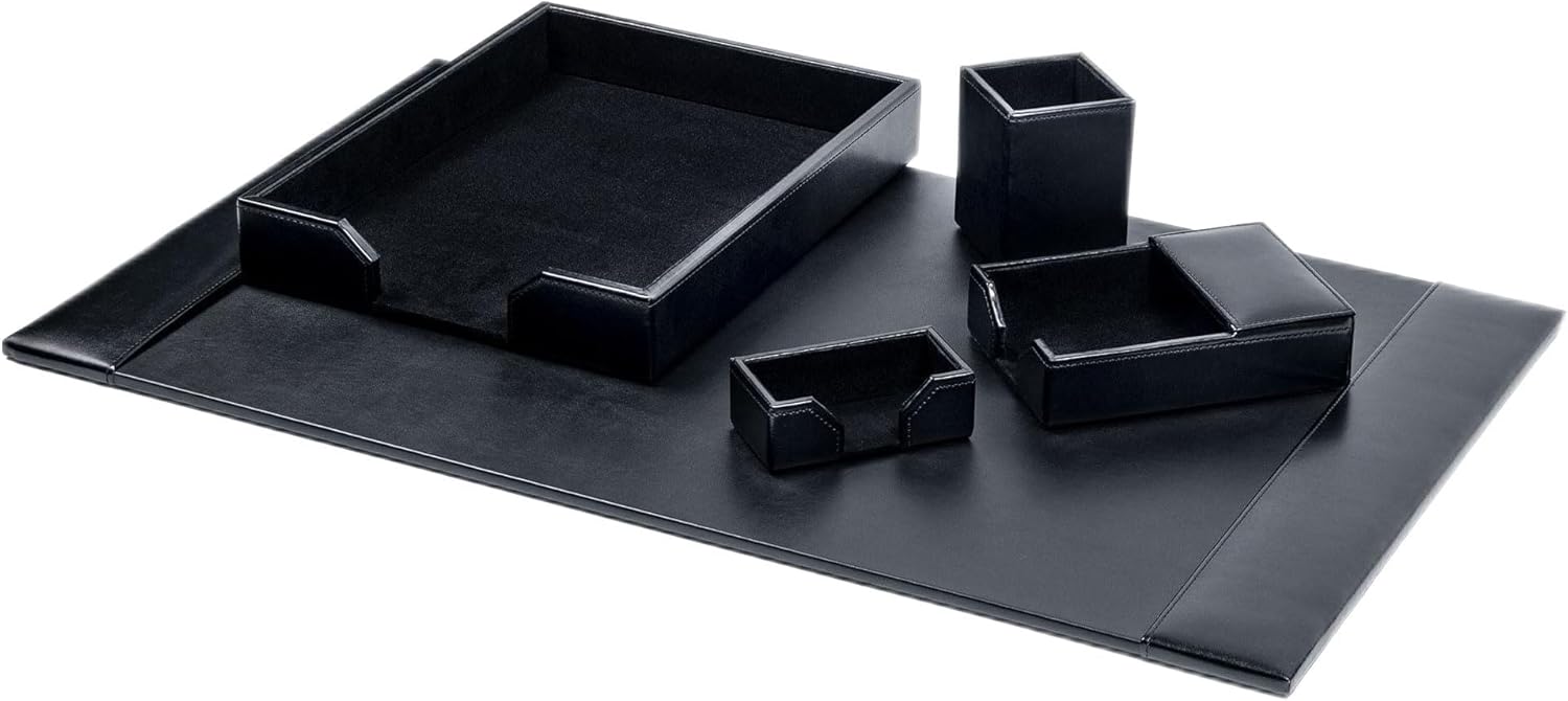 Dacasso Bonded Set Luxury Leather Desk Pad & Desk Organization Essentials, 5 Piece, Black