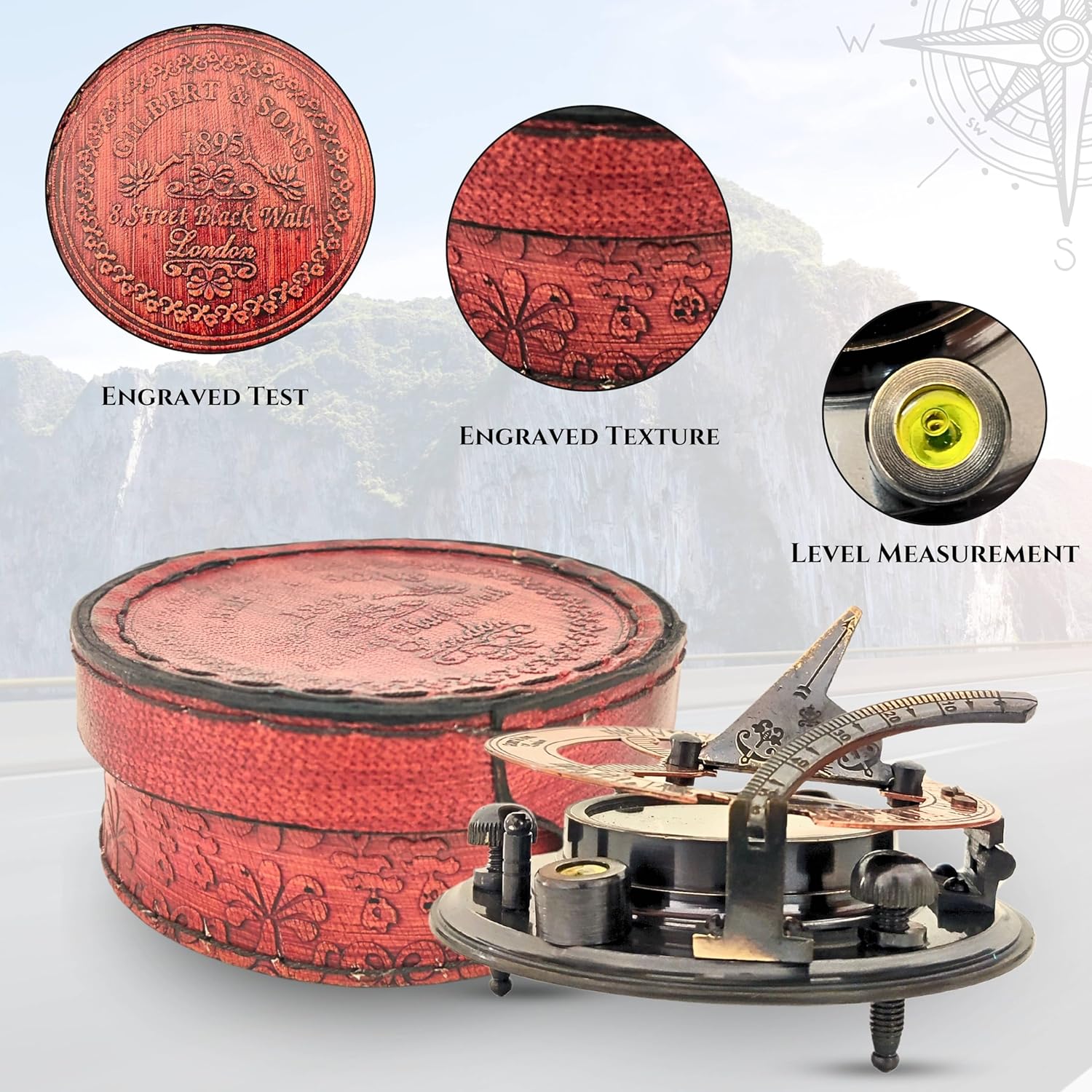 - Authentic Nautical Charm: Encased in genuine leather, our sundial compass evokes the spirit of maritime adventures, making it an ideal present for boaters, sailors, pirate gifts for men, engineers and gadget collectors.