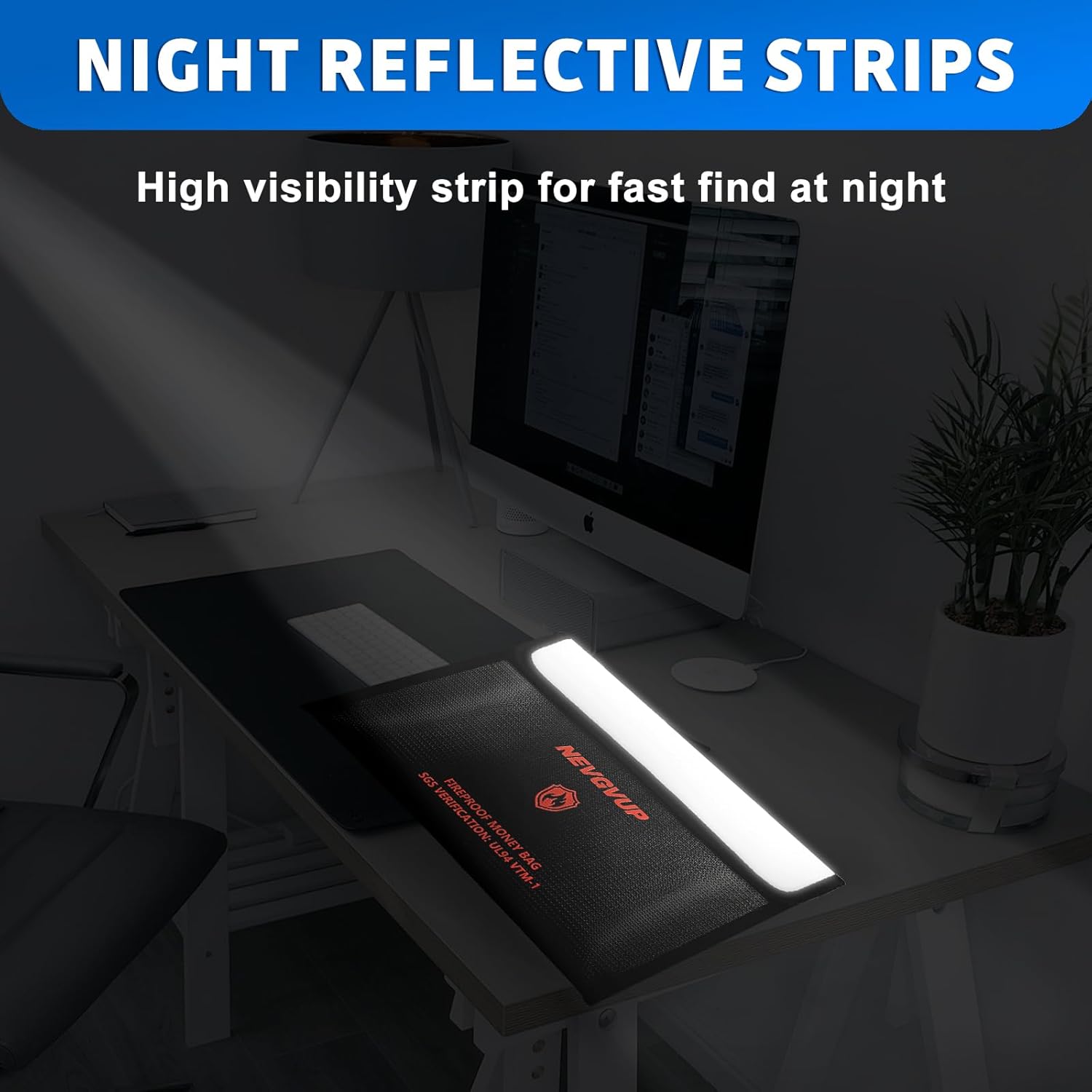 - Unique Night Reflective Strip Design: Benefit by the night reflective strip design, you can locate your fire safe bag immediately even at night! Time is life in a fire, our goal is to quickly find your most important things and go in a critical moment