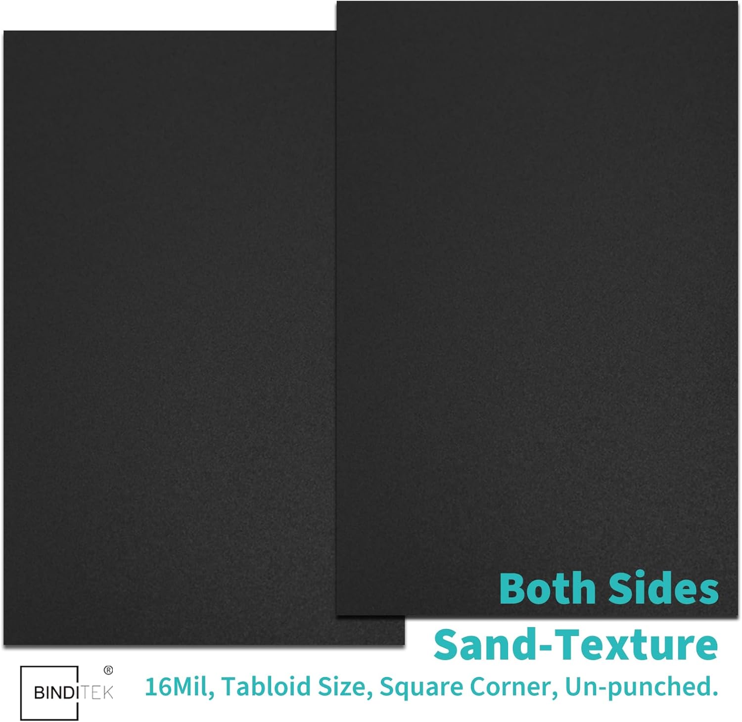Binditek 50 Pack 16 Mil Sand-Textured Polycover, 11 x 17 Inches Front and Back Covers, Lightly Sanded Finish, Heavyduty Binding Presentation Covers for Business Reports, Tabloid, Black