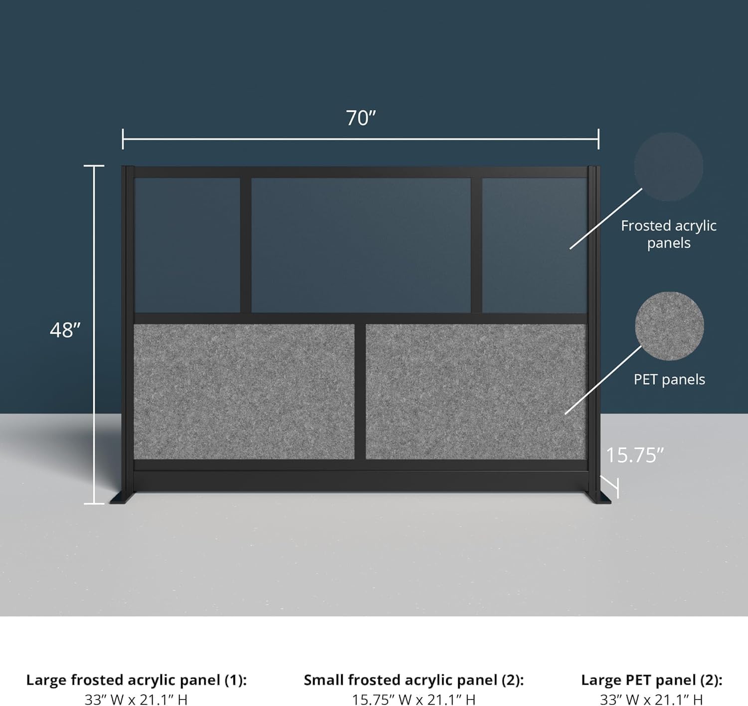 Stand Up Desk Store Expanse Modular Wall | 70'' x 48'' Wall | Expandable Partition Room Divider with Rearrangeable Frosted Acrylic & Sound Absorbent Panels (Black Frame)