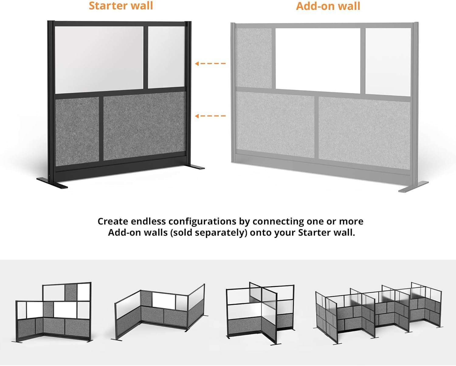 Stand Up Desk Store Expanse Modular Wall | 53'' x 48'' Wall | Expandable Partition Room Divider with Rearrangeable Frosted Acrylic & Sound Absorbent Panels (Black Frame)